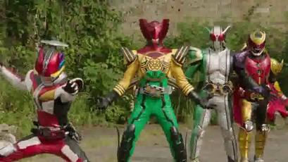 I like how all the other Riders are so used to Tsukasa's 'pretend to be evil to trick the real bady guys' plan that they pretty much see him and just go along with it. Until Momotaros decides to break charcter, at least.