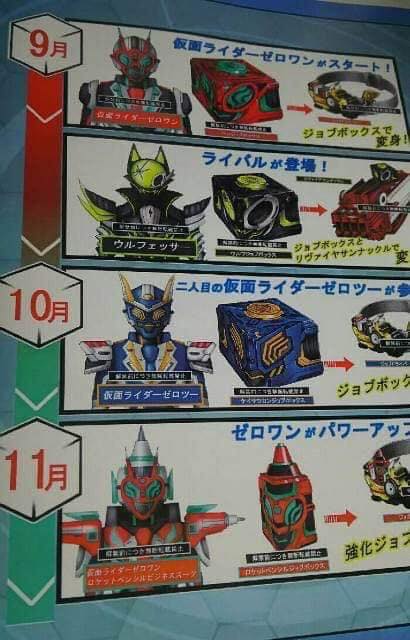 Examples being: Ghost: Ore, Musashi, Edison, and Newton. Ex-aid: Mighty Action Gamer Level 1 & 2 (not sure about any other suits) Build: RabbitTank, Gorillamond, HawkGatling, and NinninComic. Since there are no live-action pictures, I am extremely saddened to say that it is probably fake. It's really sad to see that these amazing designs are probably all fan-made. At this point the artist just needs to work for Bandai, since they clearly know what they are doing. One thing I will say though as an entire possibility. It may not be impossible that (since this has been leaked so early), that this catalog has not been completed yet, and that the artists designs are placeholders until they are edited with live-action pictures. Again, almost entirely improbable, but there is always a possibility. One more thing I would like to point out is the Zi-O form for Zero-One, in that it does not seem to have a faceplate to match Zero-One's faceplate. That being said, I don't think a fan-made piece of artwork would make that mistake, but again, it's entirely possible. EDIT: One more little note is that the main reason I have heard this is fake is that the gimmick does not match the silhouette. That being said, Zi-O's Ridewatch gimmick also did not match the silhouette shown in the teaser, so it is entirely possible that the same will happen for Zero-One, irregardless of the authenticity of these supposed scans. |