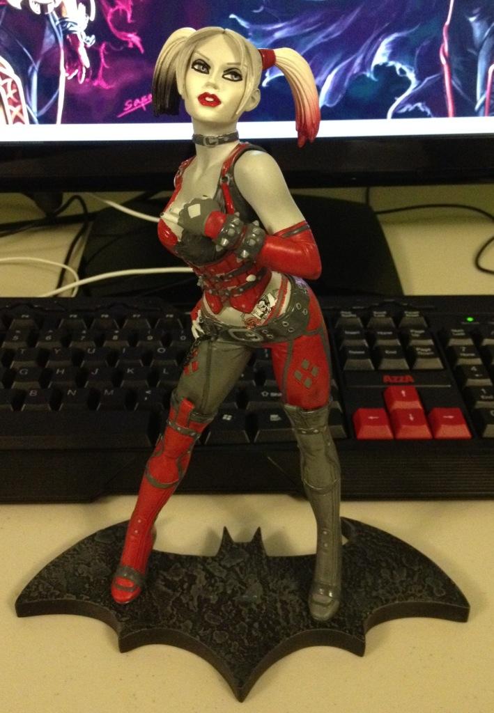 Opened my Arkham City Harley Quinn statue, and it is everything I hoped for (except alive and full size, but that's a different fantasy...jut forget I said anything). Some quick pics of her to show her off, I'll take pics in the lightbox in a couple of days. Maybe I'll get some camera instruction before i do and borrow my dad's camera.
