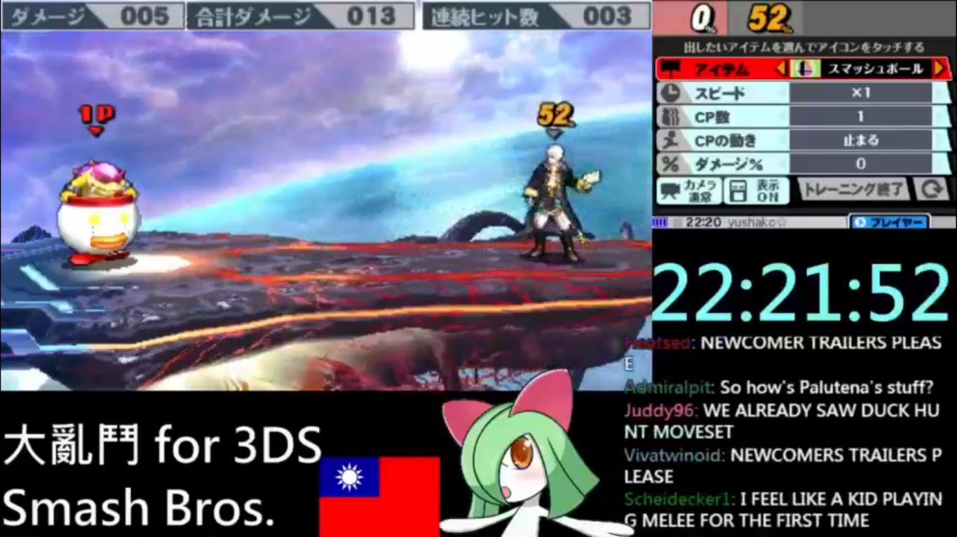 http://www.twitch.tv/hamayama He just had "New Challenger Approaching" for Dark Pit, but he lost. Dark Pit is a complete clone of Pit. Currently watching the riveting spectacle of him constantly failing Home Run Challenges... |