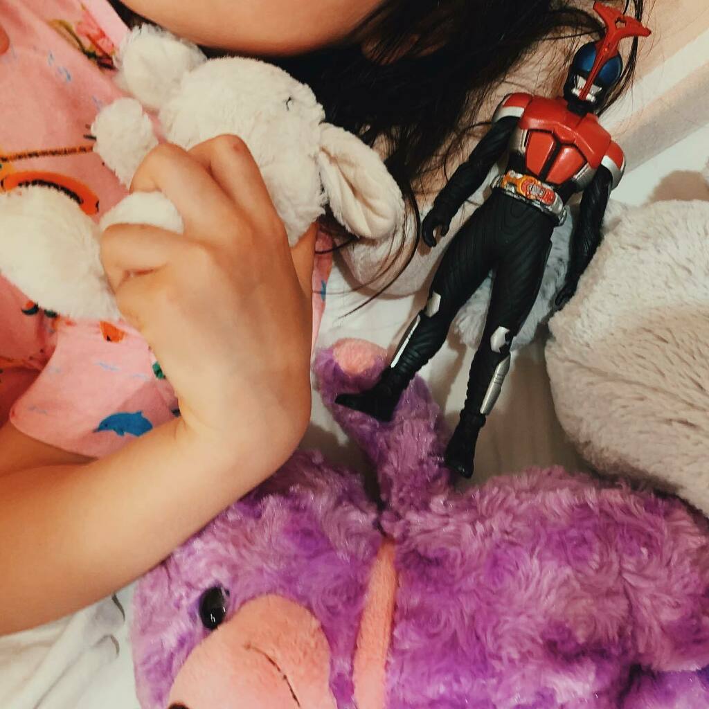 In some current cuteness, it seems Hiro Mizumashi/KR Kabuto's daughter has learned of his role in the franchise, and thus has since been carrying around a soft vinyl of Kabuto everywhere she goes.