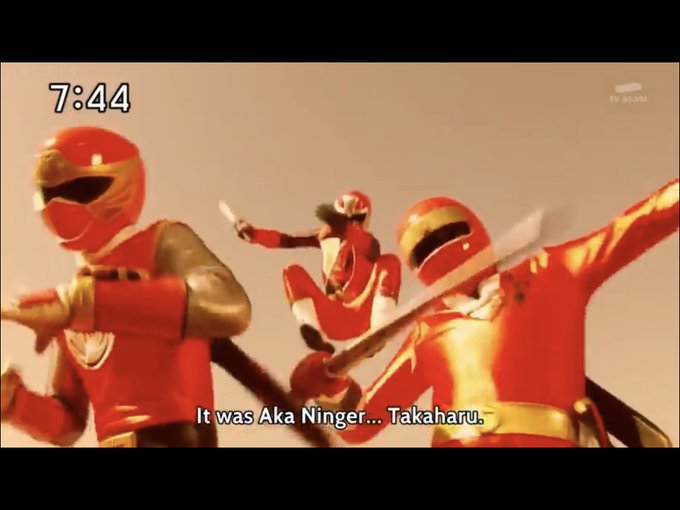 Okay, there’s been sone changes to Ninninger’s status quo since last time, so I’ll start by recapping those. New Characters: Kinji Takigawa/StarNinger: “The Colourful Star”. An American from a long line of Yokai-hunting cowboys (no, really), whose family was murdered by the Western Yokai Ookami Otoko (wolf man). He idolises the Last Ninja and purchased the gear needed to become a student of Igasaki-Ryu Shuriken Ninpo, which he became after many arduous tests. Kinji bears a likeness to Takaharu, since both are fans of Yoshitaka Igasaki and wishes to follow his path as the Last Ninja. Due to this, he labels himself with the title of Youkai Hunter, hunting Youkai to become stronger. Ever since he learned of Yoshitaka being a Ninja, Kinji displays fanaticism over things related to ninjas and Youkai, even likes to take pictures and footprints of any Youkai he comes across with. Kinji himself is naive, having following others' orders and quickly apologizes should he had made a mistake, even tends to leave his opponents alone if they were busy with their situations. After bonding with Yakumo Katou/AoNinger, Kinji's partnership with the magic ninja, who learned the art of magic at a school in England, is jokingly referred to by the other Ninningers as the Western Combo (欧米コンビ Ōbei Konbi, Western Combi), coined by Kasumi, referring to the special relationship between the United States of America and the United Kingdom. Shishi-Oh/Lion Haoh Jou (Lion Supreme King Castle): The legendary Flying OtomoNin, who was the only one Yoshitaka was unable to control. The final test for Kinji to be taken in as a student was to accomplish that task, which they did by appealing to his love of rampaging. He can take on the form of the Chozetsu NinShuriken, allowing any Ninninger he deems worthy to “Chozetsu Henge” into an armoured form that uses his power (though Kasumi prefers to use him solely for attacks, since the armour clashes with her speed-based fighting style). The Committee to Protect Ninja Honour: A group composed of experienced ninjas from around the world, set up to prevent the public from seeing Ninjas as their enemies following the attacks by the Izayoi-Ryu Ninjas and the Karakuri Kyubey constructed from their Core Gears. Their president is Toha Yamaji/Sekai SenNin Jiraiya. Masakage Tsuguomori: Gengetsu Kibaoni’s retainer, who took charge of the Kibaoni Army following the death of Raizo Gabi and took charge of the monster growing hammer after Kyuemon’s defeat at the hands of Gekiatsu Dai-Oh. Capable of surviving explosions that would kill a being of his size. Ariake no Kata: Gengetsu’s shrill harpy of a wife who treats everyone equally horribly. She steals large amounts of the fear energy that’s already been gathered both to preserve her vanity and to help her give birth to her son Mangetsu (who she dotes after, despite him arguably being the one person deserving of her abuse). Takaharu can never remember her name, much to her chagrin. New reveals about old characters Tsumuji Igasaki: Turns out that in his teenage years, he was actually a prodigy ninja known as “Chou Ninja Tsumuji”, who specialised in wind based techniques (Tsumuji = cyclone), before his powers were taken by his fellow student, along with his memory of ever having powers. Kyuemon Izayoi: Turns out he was once a student of Yoshitaka during his teenage years, alongside Tsumuji. But he left when he realised the Last Ninja didn’t trust him and stole his fellow student’s Nintality (the energy that makes you a Ninja), converting it into the source of his Izayoi-Ryu Yojutsu, which he shared among 5 of Kibaoni’s ninjas, allowing them to use a variant of Shuriken Ninpo. It also turns out that he’s the first born son of Gengetsu Kibaoni, which explains a lot about his dedication. This episode is written by another new name, Nobuhiro Mouri, who’s previous writers credits include several episodes of OOO, Go-Busters and Gaim, with his most major projects so far being Gaim’s movie war with Wizard, the ToQger/Gaim crossover, the Kikaider episode of Gaim and the novel for OOO. After this series, in which he serves as the secondary writer (by default, since there are only two writers for this whole series), he goes on to be a staff writer for Ghost, the main writer for Kyuranger and the secondary writer for Zi-O and Saber. With all that said, on with the review. Since it’s a new year, we open with the Ninningers doing some spring cleaning. But then Tsumuji appears from behind the screen and challenges Takaharu to a fight. https://pbs.twimg.com/media/E2tq4YrW...jpg&name=small After a brief struggle, in which Takaharu expresses his admiration for how challenging his dad turns out to be. But then a second Tsumuji appears and is shocked to find he has a double. https://pbs.twimg.com/media/E2tq4YxW...jpg&name=small “Tsumuji” sighs at not being able to keep up his ruse for longer. He then pulls out the Shuriken Ball (you can see where this is going), and if you’re not convinced he’s related to the Ninningers, he does the Ninninger/Ninja Steel pose. https://pbs.twimg.com/media/E2tq4Y2X...jpg&name=small Shurikenger: I am Ninja of Ninja! The Green Light Bullet! Tenkuu Ninja, Shurikenger, has arrived! https://pbs.twimg.com/media/E2tq4Y6X...jpg&name=small (Don’t ask how he’s alive. The episode isn’t keen to explain it, nor how he has the Shuriken Ball again) Having never heard of Shurikenger before, the Ninningers assume that he’s a new recruit, given their shared shuriken motifs. https://pbs.twimg.com/media/E2trIsgW...jpg&name=small https://pbs.twimg.com/media/E2trIsmX...jpg&name=small But Shurikenger puts paid to the idea of a MidoNinger (at least, until the returns special), explaining why he’s here. https://pbs.twimg.com/media/E2trIspX...jpg&name=small https://pbs.twimg.com/media/E2trIsvX...jpg&name=small This then leads to some recaps of the previous Legend Ninjas they’ve faced (Oh yea
