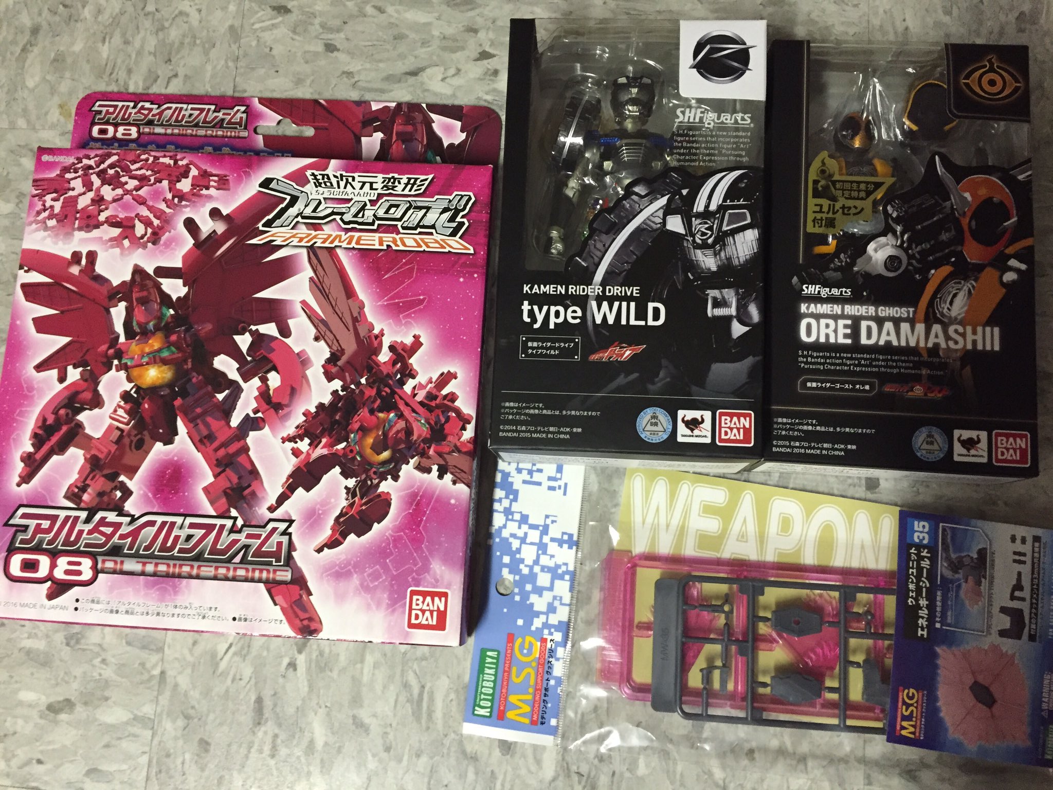 https://pbs.twimg.com/media/CimDL0lXAAIoGhV.jpg:large Got S.H.Figuarts Ghost Ore Damashii, Drive Type Wild Along with my first Frame Robo: altair frame, and Energy Shield weapon unit from Kotobukiya |
