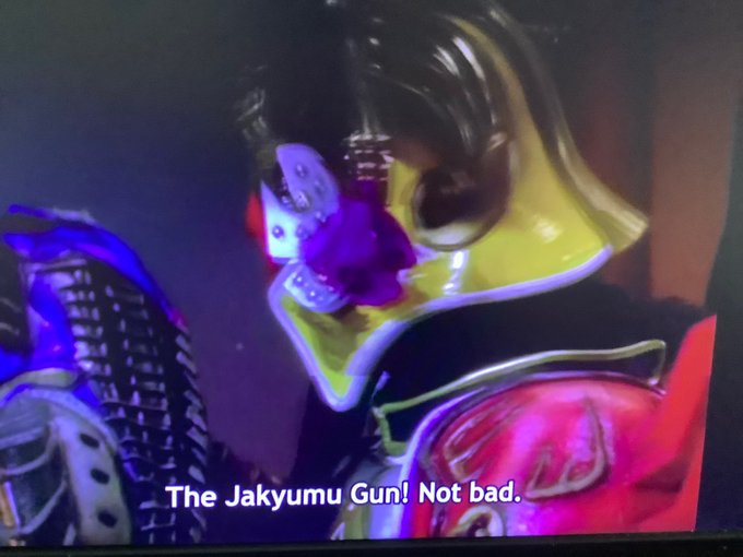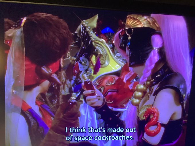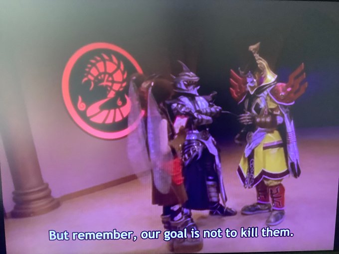 Scroll 35: Sparkle and Shamisen Instead of the usual opening credits, we open with Shurikenger training the Hurricanegers and Gouraigers to use the Ninjamisen (well, after a shot of Revolver Mammoth) https://pbs.twimg.com/media/Ex1IlZOW...jpg&name=small https://pbs.twimg.com/media/Ex1IlZJW...jpg&name=small https://pbs.twimg.com/media/Ex1IlaFX...jpg&name=small https://pbs.twimg.com/media/Ex1IlhgW...jpg&name=small After Ikkou is unable to lift the ball higher than few feet, Shurikenger hands the Ninjamisen over to the Hurricanegers to try (Apparently, Isshu doesn’t even get a turn). Now, we cue the titles. https://pbs.twimg.com/media/Ex1ImRWX...jpg&name=small After the OP, the copy of Floaty-Head has a prophecy showing a cosmic event. https://pbs.twimg.com/media/Ex1ImSiW...jpg&name=small https://pbs.twimg.com/media/Ex1ImQvW...jpg&name=small He then raps himself in a cocoon, in (what I’m sure is) reused footage from when the original did this (he even has the same dialogue once he’s fully rapped up) https://pbs.twimg.com/media/Ex1ImZ0X...jpg&name=small Elsewhere, all three Hurricanegers try the Ninjamisen (which only brings up my earlier Isshu, er issue) and fail to even move the ball (but at least their playing sounds like a Shamisen. Looking at you Shurikenger and your rock solos). Before Shurikenger can fully berate them, he receives a call on the phone in his Shuriken Zubatto (just what can that thing NOT do?) Shurikenger: Hello. What? The Evil Will? Are you sure, Master Gozen? Before he can explain who he’s talking to, he leaves, telling them to keep practising (giving no actual practical advice, I might add). At the Centipede, Tau Zant discusses the Evil Will’s latest message (that thing wastes no time) using his 4 heads (sadly, they all speak with the same voice and personality, so this is just to be visually interesting). https://pbs.twimg.com/media/Ex1InHwX...jpg&name=small https://pbs.twimg.com/media/Ex1InI5X...jpg&name=small https://pbs.twimg.com/media/Ex1IneVW...jpg&name=small https://pbs.twimg.com/media/Ex1InfzW...jpg&name=small Sargain then enters the room, offering a new plan, involving his newest puppet, Gliding Ninja Musasabitaru (which I do have a nickname for, you’ll have to wait a paragraph). https://pbs.twimg.com/media/Ex1IoGhW...jpg&name=small As Satarakura mocks it, Sargain leaps out of his own body and into the puppet’s (thus, I shall dub this “Squirrelgain”) https://pbs.twimg.com/media/Ex1IoHwW...jpg&name=small https://pbs.twimg.com/media/Ex1IoJBW...jpg&name=small Squirrelgain stated that he’s controlling this one so the operation won’t be an utter disaster like the last one (and Furabijo gets a laugh out of the sick burn directed at Wendinu). Tau Zant is intrigued enough to let him try this plan. Soon enough, Squirrelgain glides over the city, dropping down jewels, which trap anyone who picks them up, before returning to sender. All of this is witnessed by this guy (played by Yuji Kishi, better known as Kyosuke Jinnai/Red Racer in Gekisou Sentai Carranger. He’s also a voice actor and provided the voice for Chubozoo in the vs movie with Gaoranger, in addition to dubbing over his second PR counterpart TJ). https://pbs.twimg.com/media/Ex1IoPFW...jpg&name=small The Hurricanegers are alerted to the attack and fly in on their Hurricane Wingers… which Squirrelgain promptly shoots down. When they try to fight him, Squirrelgain quickly gains the upper hand. https://pbs.twimg.com/media/Ex1Io3CW...jpg&name=small When the Gouraigers show up, they for, the Victory Gadget… which fails to do anything (In all honesty, they seem to have more luck when they solo/pair kill a monster lately). Shurikenger shows up and suggests they use the Ninjamisen. Yosuke uses it… in gun mode, which is not what Shurikenger meant at all. So Ikkou plugs in the Ikazuchimaru and attacks him with a low frequency sound attack, which causes some damage. https://pbs.twimg.com/media/Ex1Io4jX...jpg&name=small However, Shurikenger chooses to criticise him for this, which gives Squirrelgain an opening he happily takes. This forces the 6 to withdraw, much to the pleasure of the rest of Jakanja, with Tau Zant advocating that Sargain hurry up and corrupt the Earth. Back with the heroes, Shurikenger reveals that Squirrelgain’s weakness is supersonic waves (quick, call Voicelugger), which can be generated with the Ninjamisen. But then the Hurricanegers speak up to say they’re sick of Shurikenger treating them as his whipping boys and not actually telling them anything about himself(as much as I like Shurikenger, this was long overdue). The state that they’ll defeat Squirrelgain without his help. And even the Kasumi Bros admit that Shurikenger focuses too much on the results rather than the actual method of getting there. It’s then we see that the guy from earlier has been watching them and he’s a Shamisen player himself… which gives Shurikenger an idea. Elsewhere, as Hamster Headmaster tries begging Master Gozen for another chance, it turns out the Hurricanegers have no idea how to beat Squirrelgain… until they see our guest character, who they recognise as the “Charisma Shamisen Player” Kazuma Namikawa. They decide that he’d be a much better teacher than Shurikenger and get him to agree to teach them… once they’ve worked out a payment plan. https://pbs.twimg.com/media/Ex1IpAsX...jpg&name=small As Kazuma tells them to focus more on heart than technique, the Kasumi Bros show up, also deciding to take the lessons https://pbs.twimg.com/media/Ex1IpA3X...jpg&name=small Kazuma tells them to keep playing until they reach a state of zen and are able to grasp the “Nagare Basho” (Running Water Bomb. Hmm, that sounds a lot like a Ninpo technique). https://pbs.twimg.com/media/Ex1IpwEW...jpg&name=small https://pbs.twimg.com/media/Ex1IpwxX...jpg&name=small Elsewhere, Squirrelgain tests his powerful laser, powered by the people he captured. https://pbs.twimg.com/media/Ex1Ip