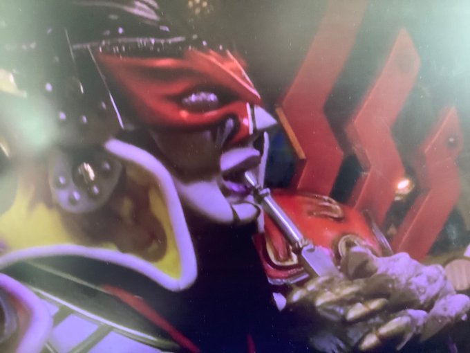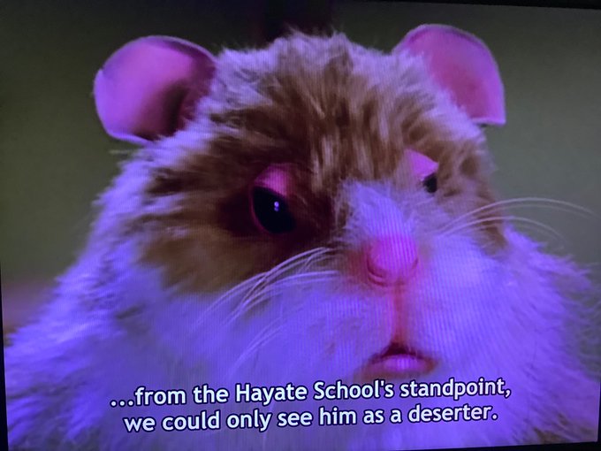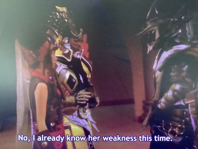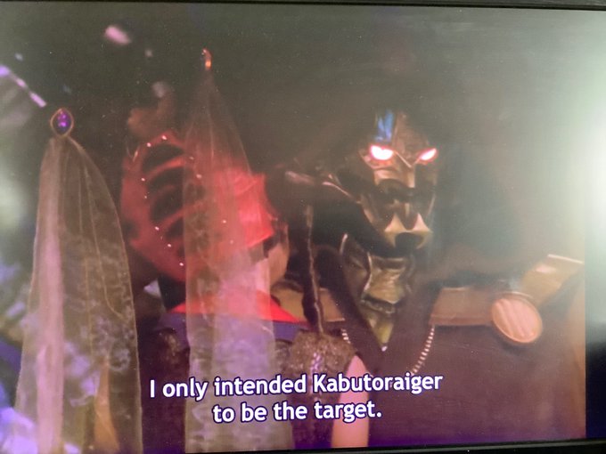 Not much to say here. This is Miyashita’s return after 4 episodes and it features the debut of our final villain. With that said, on with the review. The episode opens with something zooming through space, heading towards Earth. https://pbs.twimg.com/media/EyNwoGVW...jpg&name=small As the Jakanja are lying around (literally, in Satarakura’s case), the something impacts the Centipede. https://pbs.twimg.com/media/EyNwoGDW...jpg&name=small As everyone gets shaken by the impact, a newcomer enters the main chamber. https://pbs.twimg.com/media/EyNwoG0W...jpg&name=small https://pbs.twimg.com/media/EyNwoGlX...jpg&name=small The 4 regulars ask who he is, to which he gives his name (a portmanteau of Sunday, dahlia and the Japanese pronunciation of “eel”), while Tau Zant says he’s been waiting for him. https://pbs.twimg.com/media/EyNwsjoW...jpg&name=small https://pbs.twimg.com/media/EyNwskVX...jpg&name=small (I’ll mention that Sandaaru is voiced by Shuichi Ikeda, better known as the voice behind the original Char Anzable in the Gundam series. He’s also the dub artist for Jet Li in Japan) After the titles, the Hurricanegers are pursuing Shurikenger, who assumes a disguise (played by Shuuhei Izumi, better known as Domon/TimeYellow in Mirai Sentai Timeranger). https://pbs.twimg.com/media/EyNwskqX...jpg&name=small https://pbs.twimg.com/media/EyNwslGW...jpg&name=small At Ninja Base, Oboro is giving a slideshow summarising the plot so far to Hamster Headmaster, who is feigning disinterest. https://pbs.twimg.com/media/EyNwxa7W...jpg&name=small https://pbs.twimg.com/media/EyNwxbjW...jpg&name=small https://pbs.twimg.com/media/EyNwxcHW...jpg&name=small https://pbs.twimg.com/media/EyNwxcjX...jpg&name=small https://pbs.twimg.com/media/EyNw3V2X...jpg&name=small In their training sessions, the Kasumi Bros have come to the same conclusion as Oboro regarding the big mystery. https://pbs.twimg.com/media/EyNw3WnX...jpg&name=small The Hurricanegers follow Shurikenger to a baseball stadium, where Yosuke reveals his theory that he is a pro baseball player, due to his HiDan Senban Knock finisher. He is dismayed to find out he’s wrong. They then pursue him to a business centre, where Kouta reveals his theory that Shurikenger is a foreign diplomat, hence his tendency to speak English. He is dismayed to find he is also wrong (“Why?”). The next stop is a guitar shop, where Nanami shares her theory that the man is a rockstar, hence the Ninjamisen (which isn’t based on a rock instrument, but whatever). She is… happy to find out she’s incorrect (because that means there’s less competition in the music world, despite their two different mediums.) (In general, this seems like some kind of commentary on fan theories that are way crazier than the truth). At the Centipede, Furabijo, Wendinu and Sargain all attempt to defeat Sandaaru… only to end up soundly defeated. (Not sure why this scene is here. Feels pointless) Back with the trio, they’ve chased Shurikenger to a gyoza shop… where it turns out he just wanted somewhere to eat a cheap lunch (there were food places at all of his previous stops). While eating, he receives a phone call from Master Gozen (which is partially overheard by the Hurricanegers). https://pbs.twimg.com/media/EyNw3XGX...jpg&name=small Shurikenger retreats into the bathroom. The Hurricanegers go in and pull him out… only to find he’s swapped places with the real guy, 7 times ramen eating champ Teppei Sakaki. They realise he knew they were following him as he makes his getaway. https://pbs.twimg.com/media/EyNw3XtW...jpg&name=small Back at the Centipede, Tau Zant has an announcement, and Sandaaru is ready to follow orders. https://pbs.twimg.com/media/EyNw8v4W...jpg&name=small https://pbs.twimg.com/media/EyNw8wtW...jpg&name=small Sargain interjects, revealing he’s created his final, ultimate puppet (which means that he either doesn’t expect to surpass this or he intends to die before he makes another one). Everyone is annoyed by his rudeness… except Sandaaru, who says “If he has a plan, let him carry it out.” Tau Zant thus gives an annoyed Sargain permission to start the plan. Back with the main heroes, Yosuke and Nanami are annoyed at Shurikenger… and not just for throwing them off the scent. https://pbs.twimg.com/media/EyNw8xYW...jpg&name=small Their search is then disrupted by falling gold dust… which turns everyone it touches to gold (this is basically Miyashita saying “this show ain’t funny anymore. Now it’s all business). https://pbs.twimg.com/media/EyNw8x9W...jpg&name=small https://pbs.twimg.com/media/EyNxBSTW...jpg&name=small This turns out to be the work of the newest puppet, Corrosion Ninja Fushokuruga (While the name is straight to the point with the whole “corrode Earth” plan the Jakanja have, I’m going to call him “Gabriel” to go easier on my spell checker). https://pbs.twimg.com/media/EyNxBUKW...jpg&name=small The Hurricanegers Shinobi change and fight Gabriel off fairly easily, destroying him with the Triple Gadget. But if you thought his would be over that quickly, you’re wrong, as more gold dust scatters and Gabriel rebuilds himself with the aid of a light on his back. https://pbs.twimg.com/media/EyNxBS2W...jpg&name=small https://pbs.twimg.com/media/EyNxBToW...jpg&name=small The Gouraigers then show up and Ikkou destroys Gabriel again with the Ikazuchi-Ryu Kengi: Raigeki-Zan. Which once again, just makes things worse. Sargain then appears to explain that his is exactly what he planned. (Well duh, why else would you do it if it wasn’t?) https://pbs.twimg.com/media/EyNxH0yW...jpg&name=small As the fight continues, Shurikenger appears in a void, fading back to his suited appearance (booooo). https://pbs.twimg.com/media/EyNxH1uX...jpg&name=small https://pbs.twimg.com/media/EyNxH2bW...jpg&name=small Turns out this is the home of Master Gozen, who apparently sits on a bed with silk curtains with his face covered by a cloak (just ho