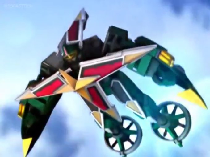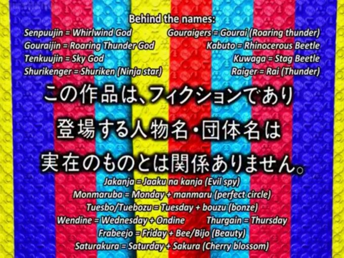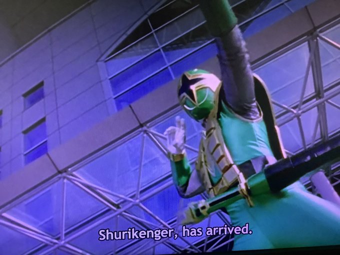 Not much to say to begin with. Just that we’re continuing where we left off last time. Kouta suggests they escape their predicament by all changing at once. After miraculously surviving the room exploding (Don’t ask), Satarakura commends them on a well played move, before stating that they’re doomed anyway and leaving. Oboro then summons all of them (even the Kasumi Bros) to Ninja Base to check something. Back at the Centipede, Satarakura states that he’s changed his mind about Manmarva: he actually does have a sense of fun. Furabijo is understandably confused about his change of heart. https://pbs.twimg.com/media/Eva5s6CX...jpg&name=small Manmarva explains that he placed a space scorpion inside Ikkou when he punched him last episode, that has now spread to the others due to unexpected pregnancy (That’s why they felt pain last episode, FYI). Then Wendinu points out exactly how dangerous these scorpions are. https://pbs.twimg.com/media/Eva5s6AX...jpg&name=small https://pbs.twimg.com/media/Eva5s6EX...jpg&name=small At Ninja Base, Oboro analyses everyone and discovers a scorpion in all of them. Ikkou then decides not to sugarcoat the situation they’re in. https://pbs.twimg.com/media/Eva5s6KX...jpg&name=small Oboro then states that there’s no way to get the scorpions out without killing the hosts. Elsewhere, Jin-Giron has finished constructing his bomb. https://pbs.twimg.com/media/Eva51I3X...jpg&name=small Ikkou then gets the idea to find Jin-Giron by analysing the metal that was on his illusion’s foot (Don’t ask how he noticed that) and find a factory rich in the same material. After locating him, everyone heads out to the battle, ignoring advice to wait until they can cure them of the scorpions (That would probably take too long). Elsewhere, the mysterious batter is inside a Karakuri Giant, cleaning off the dust, much to his dismay. https://pbs.twimg.com/media/Eva51I9X...jpg&name=small Finding Jin-Giron’s factory hideout, Yosuke steals the bomb before he can set it off and makes a dash for it. Jin-Giron responds by sending all of them into a world of illusions, wherein the Hurricanegers and Gouraigers see each other as Jin-Giron, resulting in them unknowingly fighting each other. https://pbs.twimg.com/media/Eva51KjX...jpg&name=small After they clear these illusions, Jin-Giron appears and traps Yosuke in another layer of illusions, where he can’t tell the real from the fakes. That is, until two words appear in his head “Hey, boy.” https://pbs.twimg.com/media/Eva51JqW...jpg&name=small The voice tells Yosuke to shut his eyes and focus on sensing Jin-Giron (and there’s more random English in there. The VA has the accent nailed, but his pronunciation leaves something to be desired). With this advice, Yosuke finds and shoots the real one, breaking the illusion (and it turns out the others had the same telepathic message). The Hurricanegers then destroy Jin-Giron with the Victory Gadget, despite being weakened by the scorpions, freeing all the people he captured. Satarakura is happy about this, even when Furabijo tells him that he’s about to fail. So he gives something to a clearly unwilling Wendinu: a Dekkamen (lit. “giant mask”) https://pbs.twimg.com/media/Eva58Q4X...jpg&name=small https://pbs.twimg.com/media/Eva58SAX...jpg&name=small With a bit of sweet-talking, Wendinu complies and we get our third monster growth method for the season. https://pbs.twimg.com/media/Eva58SNX...jpg&name=small https://pbs.twimg.com/media/Eva58SsW...jpg&name=small https://pbs.twimg.com/media/Eva6Ei4W...jpg&name=small https://pbs.twimg.com/media/Eva6EjmW...jpg&name=small The heroes summon Senpuujin and Gouraijin, with Oboro sending them Karakuri Ball 09: Karakuri Mantle. It’s a cloth (Don’t worry, it’s just a promotional item. It won’t be appearing again). https://pbs.twimg.com/media/Eva6EkLX...jpg&name=small While this turns both invisible and works as a boomerang, it’s insufficient to beat Jin-Giron (I wonder how Arakawa feels about promotional items being advertised). As our heroes lie close to death on the ground and Furabijo offers to give Satarakura TWO flowers (recall that a flower equals a pass), a fleet of giant helicopters appear as the sun goes down. https://pbs.twimg.com/media/Eva6EkpW...jpg&name=small After shooting Jin-Giron away from his targets, the hologram disperses, revealing there is in fact one helicopter and it is still very much broad daylight. https://pbs.twimg.com/media/Eva6Jk-X...jpg&name=small The pilot then steps out to reveal himself: the mystery man that’s been appearing throughout this two-parter (who was also the guy who helped out earlier). He uses his bat, which is also a microphone (don’t ask how that works) to announce himself. https://pbs.twimg.com/media/Eva6JlLX...jpg&name=small “I am Ninja of the Ninja The Ninja among Ninja. The green light bullet, Tenkuu Ninja Shurikenger, is what they call me.” (The VA for Shurikenger is Taiki Matsuno, better known as Jun Manjoume/Chazz Princeton in Yu-Gi-Oh GX. He’s also the dub voice for Spongebob) Back to the fight, Shurikenger takes his seat and attacks with his Karakuri Ninpo: Tenkuji Ripper (using his propellor to cut through the ground and send Jin-Giron falling). He then, using a sphere like piece of apparatus, instigates the helicopter’s transformation into Hisho Henkei Tenkuujin (Soaring Transformation Sky God) https://pbs.twimg.com/media/Eva6JlsW...jpg&name=small https://pbs.twimg.com/media/Eva6JmiW...jpg&name=small https://youtube.com/watch?v=mGOeC1tqT2U The new robot manages to easily overpower Jin-Giron (buy the toys), even more so when Shurikenger summons Karakuri Ball 10: Spin Bee and uses it to defeat his opponent. https://pbs.twimg.com/media/Eva6PrcX...jpg&name=small https://pbs.twimg.com/media/Eva6PtdW...jpg&name=small Having defeated his opponent, Shurikenger then leaps down to the Hurricanegers and Gouraigers… and pulls a sword out of his bat. https://pbs.twimg.com