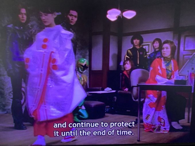 Here we are, at the last episode of 2002 and the penultimate contribution by Maekawa. Not much else to say, other than on with the review. We open with Sandaaru contemplating the appearance of Madame Gozen and theorising she might know where the Nageki no Yumi is. He then summons Cursed Fan Beast Madogi (who is unique in that a) she’s a she and b) she’s human sized) to find out what their next move is. https://pbs.twimg.com/media/EzvOLzaX...jpg&name=small We then cut to Yosuke, Nanami and Kouta coming to a temple in the hills, where they are put to work cleaning by the temple’s caretaker, Retsudo (played by Kenji Ohba, better known as Shiro Akebono/Battle Kenya in Battle Fever J, Daigoro Oume in Denshi Sentai Denziman and Retsu Ichijouji/Space Sheriff Gavan in his eponymous show), who sets them to work cleaning the temple. https://pbs.twimg.com/media/EzvOLzhX...jpg&name=small While doing this, all three grumble about how they’re too good to be doing this, while clips of their previous battles play, reminding us of their various techniques (Did I mention this was a recap episode?). In the woods, the Kasumi Bros, also looking for the temple, discover a force field protecting it (which isn’t that far fetched, if you remember the first episode). https://pbs.twimg.com/media/EzvOLziX...jpg&name=small They deactivate the force field long enough to get through, unaware that Madogi has smuggled herself in using Isshu’s shadow. Back with the Hurricanegers, the conversation turns to Shurikenger, his various disguises (so far, he’s been MegaRed, GoRed, MegaBlue, FiveRed, Kouta twice, Yosuke, Blue Racer, Red Racer, Ikkou, TimeYellow, ShishiRanger and OhRed) and his habit of speaking English (and in the spirit of the recap episode, I’m going to put some of my favourite Shurikenger English quotes for the next few lines). Baby, I’m coming. Hey boy I am Ninja of Ninja. I’m just an ordinary detective. Don’t you believe me? Cowboy, go home. Hold up. Hello. What? Hi, my honey. No, no. You don’t understand. Eh? What’s so exciting about an ondo, Dolphin Girl? Oh, I see. Sorry, my lunchtime. Jesus. Retsudo gets nervous and excuses himself with a “See you later.” (How do they not catch on to this?). Ikkou and Isshu arrive shortly afterwards and Ikkou points out that the guy is obviously Shurikenger, because who else could it be? (Correct). https://pbs.twimg.com/media/EzvOLzbW...jpg&name=small Everyone then discusses the Jakanja and their multiple attempts to corrode the Earth (for some reason, episode 12’s monster is part of this montage) followed by the prophecies to obtain “that”: “When the brave defeats the brave at the end of the world, Ninja’s final secret will be revealed. The brave will be defeated by one born from the same parents.” and “When the human beasts roam the city, the door to the Final Secret will be unlocked. And when the three headed beast rules the land, the Final Secret will appear.”, both of which were averted. Madame Gozen then appears, telling them of the third prophecy that they’re currently trying to avert. https://pbs.twimg.com/media/EzvOTIbX...jpg&name=small https://pbs.twimg.com/media/EzvOTIeX...jpg&name=small Yosuke then brigs up that they have to protect the Nageki no Yumi Medal in Madame Gozen’s head. Which Sandaaru takes as his cue to have Madogi attack. But, following a brief struggle, Shurikenger appears, still in his disguise, and fights Madogi off long enough for everyone else to get Gozen to safety. Halfway through the fight, he reverts to normal (and if you’re still not convinced he’s Kenji Ohba, he does the Gavan “Jouchaku” pose). https://pbs.twimg.com/media/EzvOTIcX...jpg&name=small Shurikenger tries defeating Madogi with his Miracle Senban Knock, but Madogi brushes this off, before Sandaaru withdraws her. Back at Ninja Base, Hamster Headmaster scolds our main trip for allowing Madogi into the temple (no, that was Ikkou and Isshu. These guys did bugger all this episode), only for a surprising presence to come to their defence. https://pbs.twimg.com/media/EzvOTIcW...jpg&name=small As they wonder why Gozen is here, Oboro explains. https://pbs.twimg.com/media/EzvOfSOW...jpg&name=small The episode then ends with the trio being forced to clean Gozen’s home (start as you mean to go, I guess). And because this review is running short, I’m going to add in the Uchuu Ninja Files for the last 45 episodes, with the rest of them coming with their associated episodes. Barrier Ninja Kekkaibo: He specialises in shield-breaking Ninpo. Magnet Ninja Jishakumo: A puppet ninja that can magnetise anything. Copy Ninja Kurisottsubo: Be careful! Whoever you’re sitting next to could be an impostor, too. Excavation Ninja Mogudrago: Looks like someone else will have to dig those Jakanja subway tunnels. Poison Flower Ninja Hanasakkadoushi: He runs a flower arranging class on Saturdays. Severing Ninja Shiransu: Uses scissors to cut relationships into eights. Dimension Ninja Futabutabu: Its like a jack in the box with a different dimension inside. Water-Absorbing Ninja Gamajakushi: So, “that” can’t be born without water? Propagation Ninja Kurukkuhoshi: He’s gonna fill the world with cicadas until it’s too noisy. Fifth Spear, Sargain: is, as everyone knows, the commander of the mecha ninja army. He makes the puppets. Nightmare Ninja Yumebakushi: You can dream about anything your heart desires. Metal Ninja Tekkotsumoeba: Someone who likes to plan things in secret. Dancing Ninja Higenamezukin: His main technique is the Uchuu Ninpo: Namazu Hige. Shall we dance? Back-to Ninja Octonyudo: Candy of experience. No sweetness, only bitterness. Karakuri Giant Megatagame: Now matter how you read it, it’s Megatagame. Mist Spitting Ninja Kirikirimaishi: His father will show up in the next episode. Island Ninja Girigirigaishi: What’s going to happen to KabutoRaiger after that dose of Girigiri Gas? Third Spear, Manmarva: A prophet who’s n