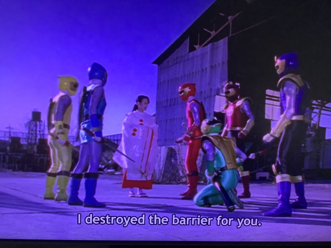 Well, I fixed my IT issues and I can once more present a full review of this, the last episode by Shin Yoshida. The rest of the series (three episodes) will all be on Miyashita?s back. With that said, on with the review. We begin at the Centipede, where Tau Zant is getting impatient waiting for the plot to move along (as I imagine some people up to this point in the series are). https://pbs.twimg.com/media/E0THjUGX...jpg&name=small Sandaaru steps forward, once more vowing to get the medal. But everyone else is less than convinced. https://pbs.twimg.com/media/E0THjUZX...jpg&name=small Furabijo brings up that he failed to get the Nageki no Yumi medal from Madame Gozen last time, but Sandaaru is more self-confident this time. https://pbs.twimg.com/media/E0THjVdW...jpg&name=small https://pbs.twimg.com/media/E0THlFxX...jpg&name=small Both then take a moment to express their admiration for Sandaaru (and Furabijo turns out to be incredibly homophobic for someone who?s slept in bed with another woman). https://pbs.twimg.com/media/E0THtjXW...jpg&name=small https://pbs.twimg.com/media/E0THtk2W...jpg&name=small https://pbs.twimg.com/media/E0THtmOX...jpg&name=small https://pbs.twimg.com/media/E0THt4XW...jpg&name=small Sandaaru restates his vow to get the Nageki no Yumi medal as Tau Zant gives him the Ikari no Ya medal for his plan. After the credits, Gozen fills in the Hurricanegers on the backstory we haven?t got yet. https://pbs.twimg.com/media/E0TH3gNW...jpg&name=small https://pbs.twimg.com/media/E0TH3h-W...jpg&name=small Ikkou and Oboro theorise that Nageki no Yumi and Ikari no Ya exist to give life to ?that?, and were separated by a peace-loving civilisation so that it couldn?t be born (well they didn?t do a very good job of it). Yosuke then summarises what the medal is, based on the context he has. https://pbs.twimg.com/media/E0TH304W...jpg&name=small Gozen agrees that it must be. https://pbs.twimg.com/media/E0TH3g1W...jpg&name=small She then shares the backstory given 5 episodes ago with the rest of the Space Union Way, along with her interpretation of it. https://pbs.twimg.com/media/E0TIA9ZW...jpg&name=small https://pbs.twimg.com/media/E0TIA-eX...jpg&name=small https://pbs.twimg.com/media/E0TIA_VX...jpg&name=small The question then turns to what will happen once they defeat Jakanja and stop the birth of ?that?. https://pbs.twimg.com/media/E0TIBScX...jpg&name=small https://pbs.twimg.com/media/E0TIDAoX...jpg&name=small The main 5 then all make a vow to protect her, which Shurikenger approves of. https://pbs.twimg.com/media/E0TIDBZW...jpg&name=small https://pbs.twimg.com/media/E0TIDCvX...jpg&name=small https://pbs.twimg.com/media/E0TIDVMX...jpg&name=small https://pbs.twimg.com/media/E0TIMKMW...jpg&name=small https://pbs.twimg.com/media/E0TIMLkW...jpg&name=small https://pbs.twimg.com/media/E0TIMewX...jpg&name=small https://pbs.twimg.com/media/E0TIMfTW...jpg&name=small Gozen on the other hand, rejects this notion, before leaving. (Is this going to be her thing? Leaving after every disagreement?) https://pbs.twimg.com/media/E0TIWYzW...jpg&name=small https://pbs.twimg.com/media/E0TIYyqW...jpg&name=small In the city, Sandaaru summons Cursed Fan-Beast Madogi (last seen in episode 45) and gives her 6 of Dezargi?s feathers to work with. https://pbs.twimg.com/media/E0TIY0FW...jpg&name=small Madogi throws the feathers away and zaps them, causing them to disperse to parts of the city with this show?s super speed sound effect (also heard as the ?jumping? sound effect in Gingaman). Elsewhere, the Hurricanegers are annoyed with Gozen rejecting their generous offer. https://pbs.twimg.com/media/E0TIY1MX...jpg&name=small Ikkou and Isshu then point out that she has a very good reason. https://pbs.twimg.com/media/E0TIgCtX...jpg&name=small https://pbs.twimg.com/media/E0TIgDhX...jpg&name=small Yosuke realises that they can never make Gozen sad? a thought that gets interrupted by Oboro annoyed at them for something. We then cut to a news report (and since the guest star budget has already been blown, he?s played by Bin Shimada, Satarakura?s voice actor). https://pbs.twimg.com/media/E0TIlPnX...jpg&name=small https://pbs.twimg.com/media/E0TIlRiW...jpg&name=small Oboro and Hamster Headmaster are annoyed at this. https://pbs.twimg.com/media/E0TIp99X...jpg&name=small https://pbs.twimg.com/media/E0TIqS4W...jpg&name=small Our heroes rush to the scene and rescue a civilian, who identifies her assailants. (If you?re confused as to why she?s acting like they?re a new thing, I?ll remind you that the Hurricanegers aren?t public knowledge. Hamster Headmaster and/or Shurikenger have the minds of anyone who sees them erased after every fight). https://pbs.twimg.com/media/E0TIp_YX...jpg&name=small They then react to the sounds of bells ringing, running to the source? the Hurricanegers? Wearing cat collars? (Didn?t we already do an evil twin story?) https://pbs.twimg.com/media/E0TIqApX...jpg&name=small https://pbs.twimg.com/media/E0TIyeMW...jpg&name=small And for further confusion, the Gouraigers and Shurikenger show up, sporting the same accessories. https://pbs.twimg.com/media/E0TIyfLX...jpg&name=small https://pbs.twimg.com/media/E0TI2a8X...jpg&name=small The real ones are annoyed and Shinobi Change to do battle. https://pbs.twimg.com/media/E0TI2bkX...jpg&name=small The score then gets evened for the heroes. https://pbs.twimg.com/media/E0TI6ioX...jpg&name=small Oboro and Hamster Headmaster are relieved at this obvious turn of events, while Gozen walks in and finds out about the situation. A battle breaks out between the twelve ninjas. https://pbs.twimg.com/media/E0TI6jYX...jpg&name=small https://pbs.twimg.com/media/E0TI6jxW...jpg&name=small This is exactly what Sandaaru wanted, and he springs his trap on the heroes. https://pbs.twimg.com/media/E0TI_4_X...jpg&name=small This traps the 6 in a barrier, sapping their powers so the fakes have the upper hand. https://pbs.twimg.com/media/E0TJCadW...jpg&name=small At Ninja Base, all of th