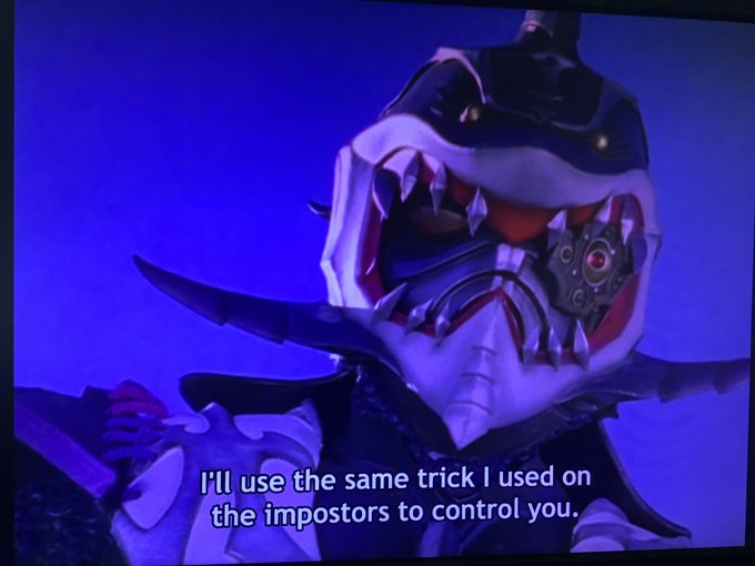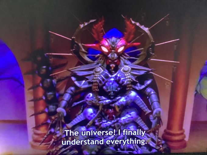 Here we are, at the penultimate episode of this watch thread. There?s nothing to say, so on with the review. Tau Zant receives the canister of energy that Satarakura collected in the last episode, beginning to absorb it. https://pbs.twimg.com/media/E0ozQP2X...jpg&name=small https://pbs.twimg.com/media/E0ozQP8X...jpg&name=small As this takes place, we can see something embedded in the canister. Namely, a softball. https://pbs.twimg.com/media/E0ozQQFX...jpg&name=small But this goes unnoticed, as Tau Zant sucks up the energy (and apparently, he stores the two medals in his eyes). https://pbs.twimg.com/media/E0ozQP9W...jpg&name=small https://pbs.twimg.com/media/E0ozVG7W...jpg&name=small In Hurricane Hawk, Yosuke activates the Shuriken Ball?s tracking feature, causing the softball to glow with energy. https://pbs.twimg.com/media/E0ozVJZX...jpg&name=small This allows the heroes to see the Centipede and fly into it, as Sandaaru realises. https://pbs.twimg.com/media/E0ozVYiW...jpg&name=small Yosuke then initiates Karakuri Ninpo: Kaentaka to crash into the Centipede. https://pbs.twimg.com/media/E0ozVg_X...jpg&name=small Cue the titles, which not only still include Satarakura, but have re-added Sargain (also Chuzoobo and Manmarva, but I wasn?t able to get captures for them). https://pbs.twimg.com/media/E0ozWhWW...jpg&name=small Hurricane Hawk survives the crash and Isshu and Ikkou have a moment of reminiscing. https://pbs.twimg.com/media/E0ozWxfX...jpg&name=small Because of this, they get told to lead the way to Tau Zant, who has begun to narrate his backstory (which becomes a staple for all of the producer?s main villains [Abrella, N Ma, Long, Ryubee, Gamou and Yodon] to only reveal their backstory as the show is ending, where it barely, if at all, factors into the plot, or causes us to reevaluate their characters). https://pbs.twimg.com/media/E0ozWxgW...jpg&name=small https://pbs.twimg.com/media/E0ozWxhX...jpg&name=small https://pbs.twimg.com/media/E0pAijvX...jpg&name=small https://pbs.twimg.com/media/E0pAij5W...jpg&name=small The Hurricanegers hear all of this, as does Hamster Headmaster. As you?d expect, they?re not too onboard with the idea. https://pbs.twimg.com/media/E0pAij0X...jpg&name=small https://pbs.twimg.com/media/E0pAij-X...jpg&name=small The heroes fight off the Magerappas and make their way to the throne room. But before more than a confrontation can take place, Tau Zant?s transformation begins, causing the base to collapse. https://pbs.twimg.com/media/E0pRvl5W...jpg&name=small https://pbs.twimg.com/media/E0pRvmrW...jpg&name=small The heroes barely make it to Hurricane Hawk, and while they escape the destruction of the Centipede, they aren?t able to escape the shockwaves. https://pbs.twimg.com/media/E0pRvm-W...jpg&name=small https://pbs.twimg.com/media/E0pRvn0X...jpg&name=small Wendinu and Furabijo have also escaped? and they bear witness as Tau Zant transforms into his ultimate form. https://pbs.twimg.com/media/E0pR-2EX...jpg&name=small Tau Zant then summons the Nageki no Yumi and Ikari no Ya to carry out his plan (and if you?re wondering, since I didn?t get a picture of it, the Nageki no Yumi appears in a red Karakuri Ball). https://pbs.twimg.com/media/E0pR-J4X...jpg&name=small https://pbs.twimg.com/media/E0pR-KKX...jpg&name=small https://pbs.twimg.com/media/E0pR-2CX...jpg&name=small He fires the Ikari no Ya into the ocean, creating a whirlpool which Oboro recognises as a reference to episode 8 (which I?ll be reviewing in the main watch thread tomorrow). https://pbs.twimg.com/media/E0pSIKvX...jpg&name=small https://pbs.twimg.com/media/E0pSILWX...jpg&name=small https://pbs.twimg.com/media/E0pSIMGW...jpg&name=small But before Tau Zant can do anything else. A wild Sandaaru appears. The wild Sandaaru used Bullet Punch. https://pbs.twimg.com/media/E0pSIMyW...jpg&name=small It?s super effective! Tau Zant fainted. https://pbs.twimg.com/media/E0pSKK2W...jpg&name=small As Furabijo mourns the death of their leader, Wendinu simply says one thing to his killer. https://pbs.twimg.com/media/E0pSKMwW...jpg&name=small That ?bastard? then explains his reasoning. https://pbs.twimg.com/media/E0pSKOIW...jpg&name=small https://pbs.twimg.com/media/E0pSKObW...jpg&name=small https://pbs.twimg.com/media/E0pSXleX...jpg&name=small https://pbs.twimg.com/media/E0pSXnBX...jpg&name=small This last comment causes Wendinu to realise that it was Sandaaru who killed Sargain. https://pbs.twimg.com/media/E0pSXoBX...jpg&name=small But it?s too late for realisations, as Sandaaru has decided that he no longer needs either of them (to be fair, they were little more than sex appeal as it was). https://pbs.twimg.com/media/E0pSX66X...jpg&name=small Elsewhere, Hamster Headmaster underlines the gravity of the situation. https://pbs.twimg.com/media/E0pSn9VW...jpg&name=small But back at the scene, Wendinu and Furabijo successfully get Sandaaru to take them on as temps by deconstructing his character and making him an offer. https://pbs.twimg.com/media/E0pSn-gX...jpg&name=small https://pbs.twimg.com/media/E0pSn_1X...jpg&name=small https://pbs.twimg.com/media/E0pSoSUX...jpg&name=small Sandaaru accepts this and a new battle begins, with the remnants of Jakanja getting an early lead in on the Space Union Ninjas. https://pbs.twimg.com/media/E0pS0HpW...jpg&name=small But, when our heroes remember Gozen and Shurikenger, they get a second wind and are able to Shinobi Change, shocking their enemies. https://pbs.twimg.com/media/E0pS0ISW...jpg&name=small https://pbs.twimg.com/media/E0pS0I8W...jpg&name=small https://pbs.twimg.com/media/E0pS0JdX...jpg&name=small https://pbs.twimg.com/media/E0pS2dQX...jpg&name=small They then form the Victory Gadget and fire on the three enemies. https://pbs.twimg.com/media/E0pS2aaX...jpg&name=small There?s an explosion which clears to show that while Sandaaru prevails, the two Space Kunoichi have left nothing but their swords (Furabijo and Wendinu died as they lived - through special effects). https://pbs.