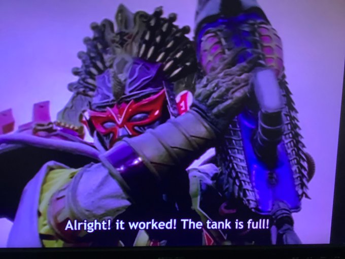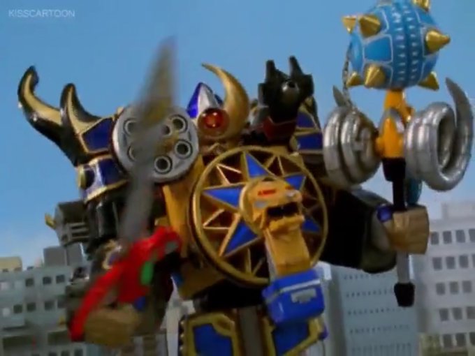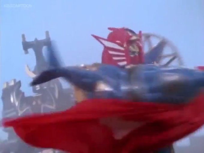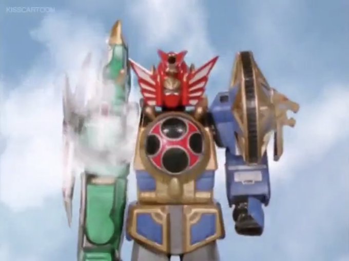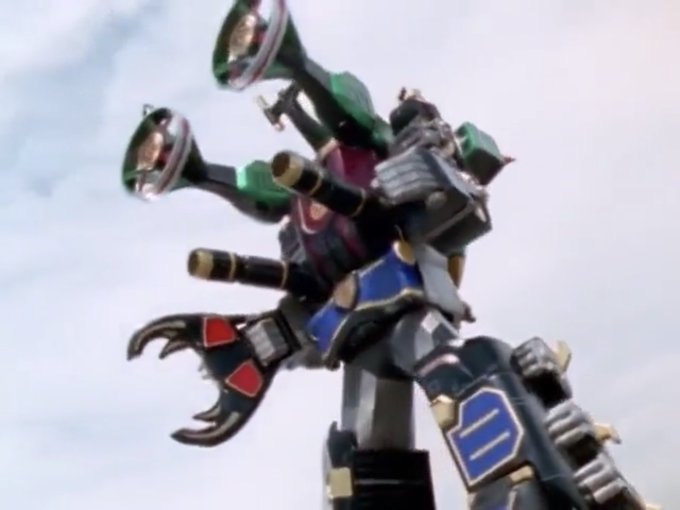 Look, what can I say at this point: It’s an Arakawa episode. It’s his last one as well, which is the best news I’ve had this week. After a recap of last time, Shurikenger tries hitting Clonemonstrous with the Spin Bee… which fails. The Hurricanegers then summon Senpuujin to help out, which doesn’t help much. They then try forming TenkuuSenpuujin and summoning Revolver Mammoth, but Clonemonstrous is simply too powerful, knocking both down and opening the eyes on the rings more. Fortunately for them, he then goes to sleep. Tau Zant theorises that this is a result of the mutation bought on by the energy of the meteors and states that Clonemonstrous won’t be returning to normal (How did he think that would make me feel?), but he is going to be using a spell to dissect his brain for information. The next day, while Shurikenger and Oboro begin work on “that flying object” (which is starting to look familiar to those who’ve seen the movie), while the Hurricanegers forego bed rest in favour of learning to use the BariThunders. But they only have four hours before Clonemonstrous digests the Gouraigers successfully. https://pbs.twimg.com/media/EyNuI9xX...jpg&name=small Nanami and Kouta (Yosuke’s broken his arm) practice to clear the three car gap needed to enter Clonemonstrous’s mouth from a skyscraper (they aren’t practising from a skyscraper, that’s what they’re going to be jumping from). Not helping matters is that Clonemonstrous stirs long enough to open the eyes on their rings slightly more and destroy a few buildings with his breath (how has he not destroyed the city yet?). As Clonemonstrous wakes up fully, Yosuke pilots Senpuujin to hold him off. https://pbs.twimg.com/media/EyNuI9tW...jpg&name=small With Senpuujin holding Clonemonstrous in place, Kouta and Nanami make the jump (And now I remember to ask: why are they doing this with the BariThunders? They have hang gliders, which would surely be much more useful in this situation). Despite interference by Wendinu and Furabijo, the two succeed and enter the mouth of madness (literally) https://pbs.twimg.com/media/EyNuI9qW...jpg&name=small https://pbs.twimg.com/media/EyNuI9uW...jpg&name=small Once inside, they surmise that the mouth is a separate dimension created by Clonemarva to torment the Gouraigers (somehow). https://pbs.twimg.com/media/EyNuPP0W...jpg&name=small They find the Gouraigers and pull them out, driving them to safety. https://pbs.twimg.com/media/EyNuPQdW...jpg&name=small https://pbs.twimg.com/media/EyNuPQtW...jpg&name=small Once they’re safe, Nanami and Kouta join Yosuke in Senpuujin, while Ikkou and Isshu form Gouraijin. Then Tenkuujin appears as Oboro sends all three Mecha a Shinobi Medal, which they use. https://pbs.twimg.com/media/EyNuPRLW...jpg&name=small Shurikenger deploys Karakuri Ball 15: TriTsuno, Yosuke deploys Karakuri Ball 16: TriKanmuri and Ikkou gets 17: TriTsume. https://pbs.twimg.com/media/EyNuWhiW...jpg&name=small https://pbs.twimg.com/media/EyNuWiNW...jpg&name=small https://pbs.twimg.com/media/EyNuWimW...jpg&name=small The three Balls combine to form Tri-Condor, which Shurikenger identifies as coming from space (they could’ve come up with a better way to reference the movie than that). https://pbs.twimg.com/media/EyNuWjOW...jpg&name=small https://pbs.twimg.com/media/EyNuck2X...jpg&name=small And since the rest of the fight isn’t that original, I’m just going to quote from my review of the movie, with the pictures changed. Quote: