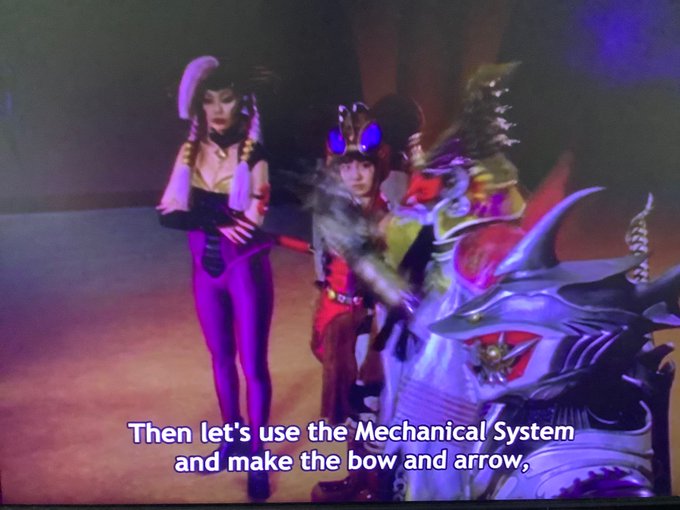 Here we are,a t part two of this climactic battle. And in a reverse of the Fangarou three-parter, the conclusion to a Maekawa cliffhanger is handled by Miyashita. But this time, it’s the same director (I think), so there shouldn’t be too much of a clash in styles. With that said, on with the review. We begin where last episode left off, but here, Shurikenger calls in Revolver Mammoth to save them from certain doom. https://pbs.twimg.com/media/EzVqUX6V...jpg&name=small https://pbs.twimg.com/media/EzVqUYDU...jpg&name=small But it doesn’t last past the titles, as Sargain uses the Ikari no Ya to perform the Gokuro Kyogekiha, which downs Revovler Mamkoth, causing Shurikenger to invoke his deity. https://pbs.twimg.com/media/EzVqUYHV...jpg&name=small TenraiSenpuujin tries to fight back with Ultima Storm, but Gaingain overpowers this, forcing them to retreat. https://pbs.twimg.com/media/EzVqUYIV...jpg&name=small https://pbs.twimg.com/media/EzVqj5lU...jpg&name=small Sargain returns to the Centipede, where Furabijo gives him a flower. Sargain then shows off that the Ikari no Ya medal is glowing, which pleases Tau Zant. https://pbs.twimg.com/media/EzVqj5mU...jpg&name=small Sargain then elaborates on this (And yes, the subbers did spell the name of the planet differently between the movie (Astram) and the show (Astrum). While different spellings are common among fans of Japanese media (dreamcastergirl’s Yodonna Redemption Arc pretty much spelled it as “Astrom”), this sub has been especially bad at consistency, given the indecision over the two Mcguffins having a definitive article and whether Jakanja are trying to corrupt, corrode or destroy Earth. Given the exact word, the second one is the only correct one). https://pbs.twimg.com/media/EzVqj5mV...jpg&name=small https://pbs.twimg.com/media/EzVqj5dU...jpg&name=small Wendinu summarise what he’s talking about. Or rather, who. https://pbs.twimg.com/media/EzVq-R8U...jpg&name=small When Satarakura points out that the Hurricanegers didn’t know anything about the Nageki no Yumi, Sandaaru points out there is likely someone above them. https://pbs.twimg.com/media/EzVq-R0V...jpg&name=small At Ninja Base (and Shurikenger’s hangar), all of the Shinobi Machines are under maintenance. https://pbs.twimg.com/media/EzVq-SCU...jpg&name=small Oboro states that the repairs of Revolver Mammoth have been left to “that person”, who Hamster Headmaster is currently meeting with. https://pbs.twimg.com/media/EzVq-SCU...jpg&name=small https://pbs.twimg.com/media/EzVrMN1U...jpg&name=small Isshu and Yosuke talk about Ikari no Ya’s incredible power, before Ikkou and Nanami bring up that they mentioned another weapon by the name of Nageki no Yumi. https://pbs.twimg.com/media/EzVrMN1V...jpg&name=small Elsewhere, Hamster Headmaster is shocked at what Master Gozen told him offscreen, before the latter tells us a story (and although he’s finally speaking, I cannot identify who is playing Master Gozen due to a voice modulator [sadly, I am not that one guy on RangerBoard who figured out that A-Squad Red was a girl], but he sounds like the narrator), which Hamster Headmaster comments on. https://pbs.twimg.com/media/EzVrMOHV...jpg&name=small https://pbs.twimg.com/media/EzVrMOHV...jpg&name=small https://pbs.twimg.com/media/EzVrYVMV...jpg&name=small https://pbs.twimg.com/media/EzVrYVJV...jpg&name=small https://pbs.twimg.com/media/EzVrYVNU...jpg&name=small https://pbs.twimg.com/media/EzVrYVMV...jpg&name=small https://pbs.twimg.com/media/EzVrs56V...jpg&name=small https://pbs.twimg.com/media/EzVrs54U...jpg&name=small https://pbs.twimg.com/media/EzVrs6MU...jpg&name=small https://pbs.twimg.com/media/EzVrs6MU...jpg&name=small https://pbs.twimg.com/media/EzVr41HU...jpg&name=small https://pbs.twimg.com/media/EzVr41RV...jpg&name=small https://pbs.twimg.com/media/EzVr41SV...jpg&name=small https://pbs.twimg.com/media/EzVr41RV...jpg&name=small Master Gozen then orders Mugensai to ensure that Ikari no Ya isn’t used again. Unfortunately, Sargain is preparing to use it to search for Nageki no Yumi. https://pbs.twimg.com/media/EzVsCcSV...jpg&name=small While everyone else is assured of Sargain’s victory, Satarakura thinks Sandaaru should get the glory of securing the weapon and killing the heroes. In the city, Gaingain reappears and summons the Ikari no Ya. https://pbs.twimg.com/media/EzVsCcNU...jpg&name=small As the Hurricanegers and Gouraigers are forced to race to the scene without their Shinobi Machines, they instead appear riding their respective ground vehicles. https://pbs.twimg.com/media/EzVsCcNU...jpg&name=small After buffeting Gaingain, Sargain leaves the Karakuri Giant to face his enemies on the ground. He quickly manages to gain the upper hand, managing to deflect everything thrown his way. Tau Zant then states what Sargain must do (even though the latter can’t hear him). https://pbs.twimg.com/media/EzVsCcPV...jpg&name=small As the fight continues, the Hurricanegers decide to attack with the Triple Gadget… which Sargain destroys easily with his GanryuKen (the shot, not the Triple Gadget). https://pbs.twimg.com/media/EzVsN0oV...jpg&name=small Sargain then blasts everyone with his finger lasers. Fortunately, the Shinobi Machines have been repaired and make their triumphant return. Sargain returns to Gaingain, facing down Senpuujin and Gouraijin. Both robots quickly prove outmatched, until Shurikenger and Tenkuujin reappear, with the three Karakuri Ginats forming TenraiSenpuujin once more. After a sword fight, which Gaingain manages to win out in due to its speed and mastery of the Ikari no Ya, Yosuke tries calling Revolver Mammoth, only for nothing to happen. And Gaingain still has the advantage over them. Luckily, Hamster Headmaster is here to clear everything up for Oboro. (And the same footage from episode 33 of Revolver Mammoth being imprinted with the six powers (Yosuke’s wind, Nanami’s water, Kouta’s ground, Ikkou’s darkness, Isshu’s light and Shu
