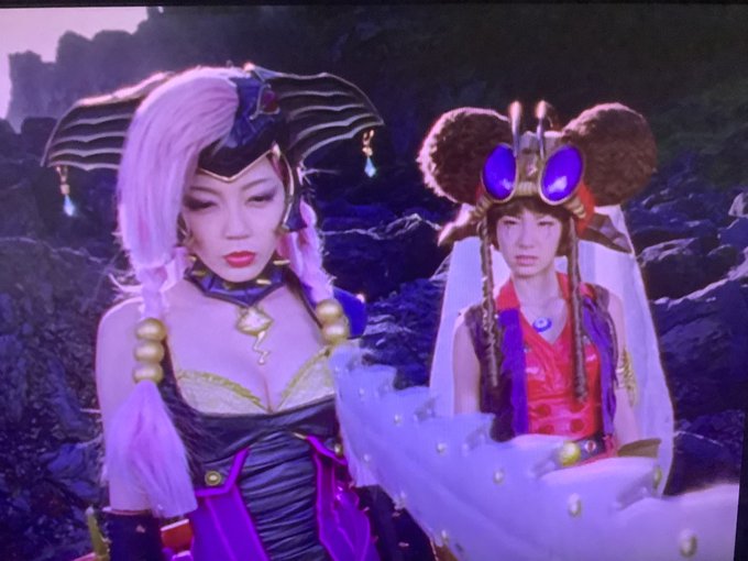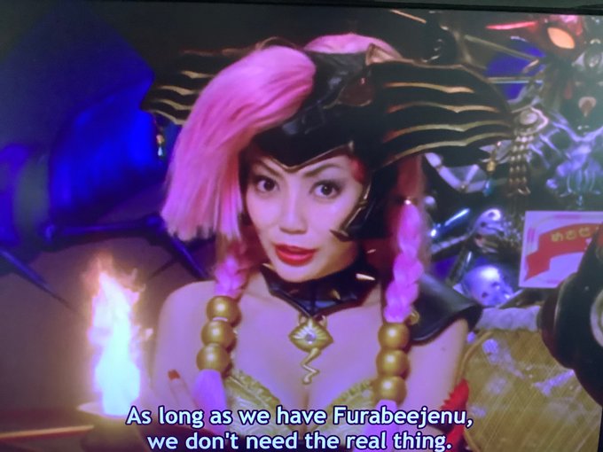 And here we are, with another Arakawa episode. Let’s see if he can deliver this time (because up to now, he’s been probably the least impressive of the show’s writers. Yes, even compared to Yoshida’s efforts in the last post). We begin with Furabijo failing Sargain for Megatagame Mk II’s failure, Satarakura for Licker’s failure and Wendinu and Manmarva because she thinks their performances have been lousy (she clearly hasn’t been watching Manmarva’s efforts to kill KabutoRaiger). She then insists she’ll make up for all their failures (again, KabutoRaiger isn’t dying of his own accord) with her own plan, revealing Bishoujo Ninja Furabijennu, a puppet made with her traits, all amplified to 300%. (And the voice of Emi Shinohara, better known as the voice behind Sailor Jupiter) https://pbs.twimg.com/media/Ew7gA0XW...jpg&name=small As Manmarva expresses disgust that Sargain would build such a thing, wondering just what dirt Furabijo has on him, our First Spear sends out Furabijennu to perform the “Greatest Earth Corruption Plan in the Universe” (which, as the narrator points out, isn’t actually explained in any detail). As Furabijennu shows up to a factory, she faces down the Gouraigers and beats them up easily (and Manmarva wasn’t even doing his thing, so she managed to beat both Ikkou and Isshu in a straight fight). The Hurricanegers only show up as she’s finished beating up Shurikenger (which considering this is his one appearance in the episode, is kind of disappointing). But luckily, Furabijo calls Furabijennu back to the Centipede, since she’s used up 75% of her power (what kind of batteries does she use?). As Furabijo has all but Manmarva doing her bidding (he leaves this episode to prepare for the next one), Furabijennu returns and is fitted with a recharger, which will take 2 weeks to repower her (again, what batteries did Sargain use to build this puppet?). The other three then decide they’ve had enough and decide they’d rather have Furabijennu as their First Spear. https://pbs.twimg.com/media/Ew7gA0ZX...jpg&name=small https://pbs.twimg.com/media/Ew7gA0RW...jpg&name=small https://pbs.twimg.com/media/Ew7gA0YX...jpg&name=small And so, by overwhelming majority, Furabijo is voted out in favour of her robot double (there’s an anti-automation message there, somewhere). At Ninja Base, Nanami ducks out of the search to attend a campaign signing (wow, she’s gone up in the world. From doing kindergarten performances to releasing an album). Back at the Centipede, Furabijennu is giving Sargain a sauna treatment (pictured below, in a picture that shows off what kind of computer I use to get these screenshots), Wendinu a massage and Satarakura help with his jokes (What does a mountain made of blankets weigh? A few-tons). She then states internally her desire to get rid of them all and become leader of Jakanja “because my ambitions are 300 times greater than Furabijo’s”. (What’s a good Sentai villain group without backstabbing?) https://pbs.twimg.com/media/Ew7gK71X...jpg&name=small As Nanami signs autographs (turns out, there’s a large market for Enka songs), Furabijo appears and transforms into a civilian guise to explain her situation. After Hase-san determines that the new girl is a friend of Nana-chan’s, he decides to recruit her as an idol. https://pbs.twimg.com/media/Ew7gK72W...jpg&name=small Thus, Hase-san proposes putting the two together as an idol unit, known as “Bishoujo Girl 7”. With some persuasion from Hamster Headmaster (who suggests that it’s a good idea to keep an eye on Furabijo), Nanami and Furabijo rehears their debut single “Shiawase Shaking Hands” (which sounds a lot like one of KR Gaim’s transformation sounds), a peppy song about friendship across barriers written specifically for this episode. https://youtube.com/watch?v=4BfHWTQG...8PFZoL1_n9bl0q https://pbs.twimg.com/media/Ew7gK71X...jpg&name=small After deciding that Furabijo is on the up and up, Nanami speaks with her as a friend. Furabijo reveals that she was kicked out of Space Ninja School for constantly getting zeroes (I’m sensing a Freudian excuse here). https://pbs.twimg.com/media/Ew7gK73W...jpg&name=small After that, she was inducted into Jakanja because Tau Zant thought she had the perfect look to be the First Dark Spear (Now I’m interested in the backstories of the other Spears. Was Sargain discriminated against due to his small stature? Did Satarakura need an outlet for his bad jokes? These are the things I want to know). And to commemorate her redemption, Nanami takes her into Ninja Base, where she shares with Oboro the plans for a controller that will shut down Furabijennu, who will be fully recharged in two days (They set up this whole campaign in 12 days?). After another montage set to the song (I’m not posting the video again), we cut to the Bishoujo Girls 7 in bed together (Make your own interpretations about that. I prefer to think Nanami is too poor to afford a second bed). https://pbs.twimg.com/media/Ew7gTk2X...jpg&name=small Furabijo is worried about Furabijennu showing up, so she leaves in the middle of the night to grab the completed remote and confront the recharged Furabijennu at Toei’s Edo set (because Arakawa was in a period where he tried to fit it into Sentai once a season. The only reason he didn’t in Go-Onger was because Shou Aikawa beat him to it by making it the setting for the movie), with Yosuke and Kouta watching. After a short fight, Furabijo attaches the remote to Furabijennu… who is reprogrammed to serve her and attacks the onlookers. Furabijo then states that she was merely acting nice in order to fool HurricaneBlue into helping her build the remote and in actuality, she cares about nothing other than suffering, which she demonstrates by tearing the campaign poster in half. Unfortunately for her, Nanami heard everything from Ninja Base and promptly shows up, dressed in a kimono, wielding a sword and a paraso