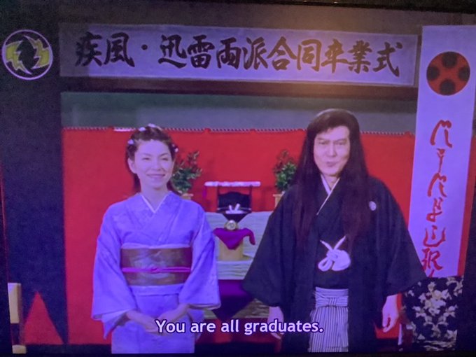 This episode is Maekawa’s second episode in a row (he can finally join the club that Miyashita, Sakai and Arakawa are in with this show). Aside from that, I regret to say that from next week, there may be some delay to me posting reviews (after episode 37, if you’re wondering), because I’m moving house. But the thread will remain open during the hiatus for anyone who wants to drop in and share their thoughts. That said, on with the review. We begin where last episode left off, with the Jakanja witnessing Ikkou’s defeat of Manmarva. While Tau Zant decides to punish Satarakura (even though, as he points out, Satarakura had nothing to do with Manmarva’s death). Wendinu on the other hand, is absolutely furious and vows revenge. https://pbs.twimg.com/media/ExpGvbZW...jpg&name=small Wendinu: Sargain, the puppet, if you please. Sargain (literally scared naked): Yes, ma’am. At Ninja Base, Oboro wonders how Shurikenger built Revolver Mammoth, while Hamster Headmaster wonders how long he can keep Master Gozen a secret from the others. Back with the heroes, Yosuke light-heartedly calls out Ikkou for defeating Manmarva on his own. But the others are too upset, counting down how many they’ve got left to kill. Nanami: We’ve only got 4 more Spears left to defeat. Isshu: Five. Remember, there are SEVEN Spears, including one who hasn’t shown up yet. Ikkou: And Tau Zant. Kouta: But it won’t be easy, especially since we’ve killed two of Jakanja’s commanders. They’ll be on alert. The next day, Wendinu has taken over a cram school, along with the latest puppet, Brainwashing Ninja Jukinoko (Who I will nickname Motorboard Mushroom, or MM for short) and discusses the plan to brainwash the children. https://pbs.twimg.com/media/ExpGvbZW...jpg&name=small https://pbs.twimg.com/media/ExpGvcAW...jpg&name=small Wendinu then goes around various places, adopting a variety of disguises in order to persuade parents to send their children to the “Wendy Cram School” https://pbs.twimg.com/media/ExpGvf7W...jpg&name=small https://pbs.twimg.com/media/ExpGwSVX...jpg&name=small At the Centipede, Sargain is embarrassed, but reluctant to actually take over the plan. Satarakura tries to start his own plan, only to be told he’s been grounded. When he tries to force the issue, Furabijo gags him. https://pbs.twimg.com/media/ExpGwRRW...jpg&name=small Wendinu’s Sishi-Henge spree takes her to a supermarket, where she ends up attracting the attention of real cashier Hashimoto (played by Yoshihiro Masujima, better known as Naoki Dumon/Blue Race in Gekisou Sentai Carranger). https://pbs.twimg.com/media/ExpGwTQW...jpg&name=small https://pbs.twimg.com/media/ExpGwZmX...jpg&name=small She tries to recruit him to work at her school, only for him to be scared by a monster… at which point MM appears, offering to take over the job of handing out fliers. Predictably, this just causes panic and Wendinu beats him up for it. The Hurricanegers then show up to see this, with Yosuke and Kouta thinking that the pretty woman who beat up the monster is a friend of Shurikenger (come on, really?). It takes Nanami (who I remind you, has probably seen one of the Jakanja naked) to point out that it’s Wendinu, at which point the two make their exit… but not without picking up fliers for the cram school. The next day, as the students March into the cram school, Hashimoto shows up (wearing a suit and carrying a briefcase, for some reason) and takes over the reception area, where Wendinu was getting a massage. MM then zaps the children with his spores (which the sun informs me are “not photons”. Good to know), making them susceptible to brainwashing. As the Hurricanegers sneak into the school, they overhear a physics lesson involving magnifying glasses (which have the Jakanja logo on them. Hooray for corporate branding). Since the classroom doors are electrified (but not to lethal levels, apparently), Hashimoto shows them a way into the Japanese class through the boiler room. In the class, Wendinu is teaching the kids theat the Hurricanegers are the enemies of the people, the Gouraigers are the messengers of the devil (which isn’t too far off from how they were introduced) and that Shurikenger is the origin of all evil (At least she doesn’t use doctored footage like that one episode of Sun Vulcan). The Hurricanegers break into the classroom and Shinobi Change, but Wendinu deploys the kids to strangle them. (But only Nanami appears to be in any actual danger from this). https://pbs.twimg.com/media/ExpGxCDX...jpg&name=small Just when all hope seems lost… Hashimoto (making a finger pistol motion): Hold up. Wendinu wonders what he’s doing… until he pulls out the Shuriken Ball (and if you’re not convinced he’s Blue Racer, he does the Carranger/Turbo pose) https://pbs.twimg.com/media/ExpGxC7X...jpg&name=small Shurikenger reveals that he knocked out the real Hashimoto and took his place to investigate, which makes Wendinu mad (again). Elsewhere, the cram school physics class attack the Kasumi Bros with their magnifying glasses, which have lasers built in (I have to wonder if anyone actually invented something like this in real life). They reunite with the other heroes and Shinobi Change into the Gouraigers, but he kids manage to overwhelm the 6… until they do the spare costume trick. After which a combination of KabutoRaiger’s Raigeki-zan, Shurikenger using the Ninjamisen as a gun (yes, it can do that as well as summon a giant robot mammoth) and the Hurricanegers using the Sonic Gadget defeats MM. This makes Wendinu so mad she freakishly deforms (seriously, what the hell)?) before returning to her normal appearance… as a giant. https://pbs.twimg.com/media/ExpGxEoW...jpg&name=small https://pbs.twimg.com/media/ExpGxK3W...jpg&name=small Tau Zant explains that his is what happens when Wendinu gets too stressed and that the last time she did this, she destroyed a whole planet (in the midst of this, Satarakura tries t