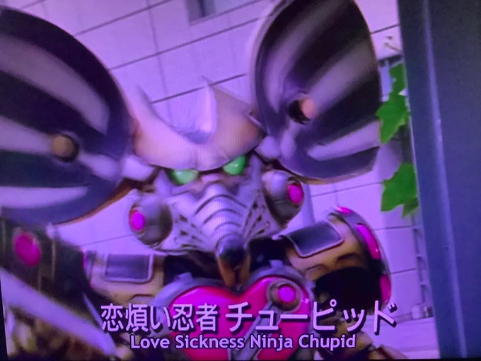 Here we are, at the episode that got me back into the series. It?s written by Atsushi Maekawa and it came out in the same week as Kamen Rider Ryuki episode 29, which has a similar plot (and, if I remember correctly, our own Kamen Rider Die declared it his favourite episode of the series, much to Fish Sandwich?s disbelief). With that said, on with the review. The episode begins with the Hurricanegers checking up with Isshu on how Ikkou is doing (recall that he has a scorpion egg in his heart that will kill him when it hatches). This tender scene is interrupted by Nanami stating that Hase (her boss, if you?ve forgotten, since he hasn?t appeared for a while. Speaking of absent bosses, Yosuke?s boss?s actress appears in the aforementioned Ryuki episode as the female victim) has offered to introduce her to Kazuya Misaki (Ah yes, Kazuya Misaki. The big star created specifically for this episode) and she asks if the others are interested (Nanami, honey. Do you really think Isshu would be into that sort of thing?). Isshu, predictably, gets annoyed and leaves. Elsewhere, a woman gets shot by an arrow fired by a mysterious figure. https://pbs.twimg.com/media/Ev0RmN4W...jpg&name=small The figure then reveals himself to be Love-Sickness Ninja Chupid, whose attacks on other people quickly catch Isshu?s attention (way to blow your own scheme, you moron). https://pbs.twimg.com/media/Ev0RmN6X...jpg&name=small Elsewhere, Kazuya Misaki, played by Masaya Matsukaze, better known as Shun Namiki/Mega Blue (and he also unsuccessfully auditioned for the lead role in Kamen Rider Kuuga. Imagine how differently things would've gone if he got the role), prepares to disembark his bus. https://pbs.twimg.com/media/Ev0RmN5X...jpg&name=small He is almost immediately hit by Chupid (talk about bad luck) and knocked out, forcing Nanami and Hase to go looking for him. Isshu is soon after hit by another arrow, causing him to fall back into Nanami?s arms. He takes one look and becomes smitten, before she sends him off. Kazuya Misaki then comes to and also becomes smitten with Nanami when he sees her (It?s easy to see where they?re both coming from, but?). Chupid?s other victims begin to fall in love with the first thing they see, a plan that doesn?t inspire much confidence from the non-Sargain Dark Spears. https://pbs.twimg.com/media/Ev0RmN9X...jpg&name=small https://pbs.twimg.com/media/Ev0RreHX...jpg&name=small Isshu then goes to his brother to ask for romantic advice? which causes Ikkou to spit his drink out (I know right? Guy like him in love with someone?). Kazuya Misaki (look, if the episode is going to use the full name every time, then so am I) shows up to Nanami?s dressing room with flowers and asks her to the beach. Isshu then disrupts the actual concert (Guy has no tact) to hand Nanami a love note… written on a calligraphy scroll, complete with flowery language. Nanami later announces to her friends that Kazuya Misaki is taking her to the beach (which makes Oboro dejected). Yosuke and Kouta thus decide to give Isshu some much needed advice (apparently, a jerk is a better match than a total stranger in their eyes). Ikkou listens in, saying that he?ll support his brother no matter what he decides. https://pbs.twimg.com/media/Ev0RreJX...jpg&name=small Elsewhere, the things people are falling in love with after being hit with the love arrows? becomes stranger. https://pbs.twimg.com/media/Ev0RreKX...jpg&name=small Isshu then goes to Nanami as she?s waiting for Kazuya Misaki to pick her up with the cute animal he found for her? a cow. https://pbs.twimg.com/media/Ev0RreAX...jpg&name=small Predictably, she ends up leaving with the rich guy with some sense of taste, who gives his rival some much needed words of advice. (?Cowboy, go home.?) Elsewhere, as a political meeting with a foreign senator goes awry since the Prime Minister is enamoured with a dog doing a tinkle on a tree, Sargain explains his plan. (It?s amazing nobody thought to follow up on Isshu chasing after him when Chupid first appeared) https://pbs.twimg.com/media/Ev0RvmzX...jpg&name=small https://pbs.twimg.com/media/Ev0Rvm1W...jpg&name=small https://pbs.twimg.com/media/Ev0RvmsW...jpg&name=small https://pbs.twimg.com/media/Ev0Rvm6W...jpg&name=small https://pbs.twimg.com/media/Ev0R029W...jpg&name=small The other Spears begin applauding him all of a sudden and Tau Zant gives permission for the plan to begin (Um, it?s been in operation for a while? Is this a flashback?). At the beach, Kazuya Misaki and Nanami are playing volleyball (and the ball is green), before Isshu turns up to fight for the maiden?s hand. Then Chupid shows up to attack, causing KuwagaRaiger to change tact and battle him for Nanami?s affection. Kazuya Misaki then stops him and pulls out the Shuriken Ball (and in case you?re not convinced he?s Mega Blue, he does the Megaranger/In Space pose, though I captured it at a different point to Taro doing it a few episodes ago). https://pbs.twimg.com/media/Ev0R020W...jpg&name=small Nanami is frustrated that he?s not the real Kazuya Misaki and even more frustrated when Isshu starts fighting Shurikenger when he calls Nanami ?My honey?. And when she tries to face Chupid by herself, she gets blown up for her troubles. This does have the effect of getting the boys to stop fighting and help her? only for them to get blown up too while Wendinu and Furabijo watch from the side in bikinis. But luckily for them, Isshu is able to stand up to way more explosions than the others. https://pbs.twimg.com/media/Ev0R023W...jpg&name=small The two Spears are confused, since his love for Nanami should be weakening him. Yosuke, Kouta and Ikkou (all of whom have arrived late) explain that love doesn?t weaken you, it makes you stronger when the one you love is threatened. Isshu then continues to tank all of Chupid?s shots until Shurikenger throws him his Stag Breaker (which he dropped earlier), which he combines with the Ikazuchimaru to create the Ikazuchi Breaker. https://pb