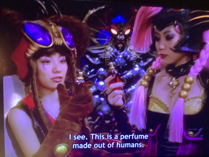 Well this episode is another Miyashita one, and it introduces what I’ve been told is one of the main plots for this season. I’m also using it as an excuse to explain who the guest star for Den-O episode 15-16 is (Since I’m not doing live actors on Die’s thread for Den-O this time). With that said, on with the review. We begin where last week left off, with our main trio wondering who this “Shurikenger” guy could be. Oboro can’t recognise what school he represents, but Yosuke is quick to dub him better than Ikkou and Isshu (I know they tried to kill you, but let it go man). Hamster Headmaster then reveals through an inner flashback that he found out the basic details of Shurikenger, but not his identity or school. https://pbs.twimg.com/media/EvlVtdXW...jpg&name=small At the Centipede, things are as normal as they get around there… except for one thing. https://pbs.twimg.com/media/EvlVtdWW...jpg&name=small Sargain insists they ignore him and get on with eliminating Shurikenger. https://pbs.twimg.com/media/EvlVtdXX...jpg&name=small Wendinu compares him to a “weirdo who likes to make puns”. Speak of the devil, Satarakura appears with a gift that pleases the ladies (and aggravates Sargain’s sense of smell). https://pbs.twimg.com/media/EvlVtdXX...jpg&name=small Tau Zant can tell that the perfume was made by Kira-Cologne, a monster of Satarakura’s based on hands (Jin-Giron was based on eyes). Sure enough, said monster is attacking the people, turning them into a chemical which will become perfume in 24 hours. https://pbs.twimg.com/media/EvlVyjHX...jpg&name=small In the midst of this, we are introduced to this guy (played by Hayato Osuba, better known as Kenta Date/Mega Red.). He gladly takes on the case of Kira-Cologne… only to find that she vanished while he wasn’t looking. https://pbs.twimg.com/media/EvlVyjlX...jpg&name=small Wendinu and Furabijo are suddenly more pleased by their gifts… until Satarakura reveal the truth. https://pbs.twimg.com/media/EvlVyj_W...jpg&name=small https://pbs.twimg.com/media/EvlVykaX...jpg&name=small https://pbs.twimg.com/media/EvlV5fLX...jpg&name=small And to add insult to injury, he unleashes a real space cockroach to attack them and Sargain (Some boss Tau Zant is, to be letting this all happen). In the city, the Hurricanegers investigate, with Kouta debuting Hayate-Ryu Ninpo: Inu Hana (which does exactly what you’d get if you translate it into English). https://pbs.twimg.com/media/EvlV5f7X...jpg&name=small The guy from earlier then shows up and sees that they’re also on the case (Which is a bit of a stretch). He uses a card to introduce himself as the famous detective Taro Kakkio… who is starving and impoverished because no-one is hiring him. (To quote another show by the same producer, he’s half-boiled). Our trio, obviously, leave the nut alone and his attempts to tag along cause him to almost fall into a manhole (that’s what a high school education spent playing video games gets you). Kira-Cologne attacks a restaurant where all the staff and customers turn out to be the Hurricanegers and Gouraigers (the fate of the real staff is left undisclosed). They transform, Kira-Cologne summons the Magerappas and a fight breaks out. Midway through, Ikkou collapses suddenly. https://pbs.twimg.com/media/EvlV5geX...jpg&name=small This turns out to be why Manmarva was chanting before: it’s part of his current plan for revenge against KabutoRaiger (what about KuwagaRaiger? He diddled you just as much). https://pbs.twimg.com/media/EvlV5g-W...jpg&name=small Taro then shows up and gets himself into trouble, eventually falling into the sewers. Nanami and Kouta go to help him, only to end up bottled by Kira-Cologne. https://pbs.twimg.com/media/EvlWYeHX...jpg&name=small It’s then that Taro leaps up from out of the sewers, proceeding to deliver a beatdown to the Magerappas. Kira-Cologne is so dumbfounded that Ikkou is able to shoot her, even in his weakened condition. https://pbs.twimg.com/media/EvlWYeoW...jpg&name=small Kira-Cologne then realises that she can simply succeed by leaving and waiting until the bottled humans turn into perfume. Yosuke tries to get frustrated, but Taro stops him (“Don’t worry. I know where she’s going.”) https://pbs.twimg.com/media/EvlWYfLX...jpg&name=small Turns out he managed to get a tracking device on her before… using a baseball move with a broom (hmmm). He then leads them to a rundown warehouse, where they detect the essences behind an apparently solid wall. As Kira-Cologne appears to stop them, Taro steps forward (“I’m sorry.”) and attacks her, while still pretending to be a detective (“Don’t you believe me?”). He quickly gives this up and prepares to do something (“Attention please.”) before pulling something out of his pocket. https://pbs.twimg.com/media/EvlWYfqW...jpg&name=small Ikkou (miraculously, considering he never saw it in the previous episode) recognises this as Shurikenger’s Shuriken Ball. (Buy the toys) https://youtube.com/watch?v=gO-tAWxMVwg Taro then uses the ball to transform into Shurikenger. (And if you doubt that he’s really Mega Red, he does the Megaranger/In Space pose as he transforms) https://pbs.twimg.com/media/EvlWKt8W...jpg&name=small Shurikenger and the Gouraigers hold off Kira-Cologne while Yosuke finds and frees the people and animals she captured. All but Nanami and Kouta, who Kira-Cologne uses as hostages to get everyone to drop their weapons before releasing them… and attacking our main 5. This ends up breaking Shurikenger’s “seal of anger”, allowing him to throw his vest off. https://pbs.twimg.com/media/EvlWKt4X...jpg&name=small With a command of “Great Reversal! Face Change!”, he becomes Shurikenger Fire Mode, as his insert song (Shoko Fujibayashi’s one contribution to Tokusatsu songwriting in 2002) plays. https://pbs.twimg.com/media/EvlWKt9X...jpg&name=small https://youtube.com/watch?v=l6BgQxiPiNg The newly empowered Shurikeng