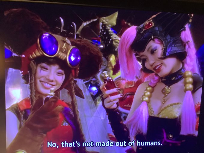 Welcome to the beginning of “Tenkuu Gattai” week. We begin with another episode by Naruhisa Arakawa, who one guy on Twitter recently described as “Great at social commentary, not so great at writing villains”. And given that this is a “revived monsters” episode, let’s just see how well that holds up. And now, on to the review. The episode opens with Kouta paying homage to his grandma Ayame, who died when he was 4 (given it’s been established that his parents died when he was at least 6, I’m surprised he even knew her name). His one memory of her is when she cheered him up by making her folded arm look like a pair of buttocks (apparently, the Bitou clan are renowned for their bizarre sense of humour). At the Centipede, Sargain and Furabijo chew Saturakura out because his “strongest commander ninja” hasn’t shown up (sure, single out the new guy for your complaints). But Manmarva sides with said new guy in saying that he IS here, they just have to listen. They hear a buzzing and Wendinu notices something on her… tools. https://pbs.twimg.com/media/Ev0Op2EX...jpg&name=small Tau Zant then speaks of Vamp-Iyan’s skills highly, before Satarakura sends him out to attack 5 schoolgirls (why schoolgirls? Damn if I know). Vamp-Iyan gets on with his task, attacking 6 schoolgirls. (No, you read that right). https://pbs.twimg.com/media/Ev0Op2MX...jpg&name=small The Hurricanegers arrive on the scene and see Satarakura, who states that there’ll be no riddles this time (good, because you were kind of dickish back then). Vamp-Iyan then fires his beams at several locations across Japan, (some of which will be familiar if you’ve watched the show so far) before leaving with his boss. As the Hurricanegers wonder what happened, someone puts heir hand on Kouta’s shoulder, suggesting they go on a date. https://pbs.twimg.com/media/Ev0Op2NX...jpg&name=small The girl states that she’s wanted to hold Kouta for so long (errmmm), leading Nanami to assume she’s his ex (if she is, then she’s remarkably happy to see him again), which Kouta denies. As the girl drags a reluctant Kouta away, Satarakura realises something. https://pbs.twimg.com/media/Ev0Op2MX...jpg&name=small Vamp-Iyan explains that he got hungry while on the job, but Satarakura doesn’t mind, as he thinks he can get another Commander Ninja out of the deal (wait for it). We then get treated to a montage of the girl dragging Kouta all over the place, set to a generic pop song that was presumably in the charts at the time (if I had to guess the name, it would be “Shiawase Beam”. Apparently, playing one public domain song was mandatory in Sentai at the time. It’s something I don’t miss). As they sit down and ask her who she is, all she says is that she used to hold Kouta in her arms, which (obviously) doesn’t narrow it down. She then picks up a softball and poses with it, as the Shuriken Ball standby plays… before throwing the ball away and clenching her folded arm to look like a pair of buttocks (funny gag, but it requires you to ignore every in and out of universe rule about how Shurikenger works to make sense). She introduces herself as Ayame Bitou, Kouta’s grandma. She insists on being called “Ayaya” and explains she was mysteriously revived by that monster’s beam (which opens up a lot of questions, like why did it revive her immediately, why did it revive her specifically and why it reverted her to the body of a teenage girl). She states that Kouta looks like his grandfather and she wanted to go on a date with him because she didn’t get to go on dates at this age the first time around due to the war (nice explanation, but the first part just seems creepy. This isn’t a sins video, but I’m adding 5 sins for the implications). Elsewhere, Vamp-Iyan revives the targets of his other beams (which only brings up the same question as before: Why did Grandma Ayame get revived immediately?): Higenamezukin (see episode 13), Yumebakushi (see episode 11), Flora (see episode 5), Orlin (see episode 9) and Octonyudo (see episode 14). (Why did he only revive Chuzoobo’s monsters?). The 5 then proceed to attack the cities of Sapporo, Osaka, Nagoya, Hakata and Okinawa with their abilities. https://pbs.twimg.com/media/Ev0OwGrX...jpg&name=small https://pbs.twimg.com/media/Ev0OwGjW...jpg&name=small https://pbs.twimg.com/media/Ev0OwGjX...jpg&name=small https://pbs.twimg.com/media/Ev0OwGrW...jpg&name=small https://pbs.twimg.com/media/Ev0O50wW...jpg&name=small The Kasumi Bros see the chaos and decide to help out in Sapporo and Okinawa. The Hurricanegers set off for the other locations… except Kouta, who is held back by Ayaya (Geez, lady. Does the fate of the Earth mean nothing to you?). She states that she doesn’t want Kouta to fight because his grandfather died in the war (so, was Kouta’s dad the result of an unmarried teen pregnancy? If so, she seems remarkably blasé about that for a child of the 30s and 40s) and Kouta is a crybaby (Lady, have you been watching his life at all since you passed on? He’s literally has the driest eyes of the cast so far. Besides maybe Ikkou). Kouta ignores her and flies off to face Flora. A fight breaks out with everyone facing an opponent in one of the 5 cities (with some glorious use of split screen), but none of them can be killed, since they already died once (so is Ayaya going to live forever? Imagine what that must be like for her), with only Vamp-Iyan’s defeat being able to send them back to the afterlife. So Ayaya uses her mosquito luring skills to bring him out (fortunately for her and a concerned Kouta, Vamp-Iyan chose that moment to get hungry). Kouta defeats Vamp-Iyan by poking her, much to his grandma’s surprise. Vamp-Iyan is then revived with a Dekkamen at giant size… relative to his original height. https://pbs.twimg.com/media/Ev0O507W...jpg&name=small Kouta this has to face him in a regular fight, destroying him single handedly again. Then Satarakura thro