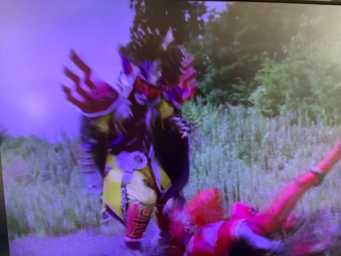 Well, here we are again. Another three part turning point that resolves an arc building up for 10 episodes. Will it live up to the “island battles” three-parter? Let’s find out. The episode opens with meteors headed towards Earth, as Tau Zant receives a vision of a face and a voice (the real big bad of this series? Let’s see). https://pbs.twimg.com/media/ExFah4aX...jpg&name=small https://pbs.twimg.com/media/ExFah4iX...jpg&name=small Elsewhere, Ikkou and Manmarva are in battle, a battle which ends with the latter’s victory and the former’s apparent death (man, they’re wasting no time this week). https://pbs.twimg.com/media/ExFah4hW...jpg&name=small https://pbs.twimg.com/media/ExFah4dX...jpg&name=small Thankfully, it turns out to be a nightmare Ikkou was having (and don’t let the bad exposure detract from how literally and figuratively dark this episode is). https://pbs.twimg.com/media/ExFapQ0W...jpg&name=small Back at the Centipede, Manmarva notices the full moon in the sky and looks over a strange cocoon (if I learned anything from Lost Galaxy, it’s never ignore a strange cocoon). He once more mentions how “traitors will be punished” https://pbs.twimg.com/media/ExFapRWW...jpg&name=small https://pbs.twimg.com/media/ExFapRxX...jpg&name=small In the main room, Tau Zant gives Satarakura full permission to begin his plan. The latter complies, calling out his trump cards, the Ninja Wolves Fangarou (Make your own Garo joke, I know next to nothing about the franchise). https://pbs.twimg.com/media/ExFapSOW...jpg&name=small https://pbs.twimg.com/media/ExFauoIW...jpg&name=small https://pbs.twimg.com/media/ExFaup4X...jpg&name=small Satarakura explains that he saved these three from the forced extinction of their species (making me wonder who carried out this extinction) and created a special whistle that allows him to command them. https://pbs.twimg.com/media/ExFauoxX...jpg&name=small Elsewhere, Yosuke is called out to the middle of a quarry in the dead of night by Ikkou for one reason. https://pbs.twimg.com/media/ExFaupVW...jpg&name=small https://pbs.twimg.com/media/ExFaz1NX...jpg&name=small As Isshu wakes up to find himself alone, Ikkou defeats Yosuke with the Ikazuchi Style’s best move, the Kabuto Raigekiha. Yosuke brushes off Ikkou’s vague excuse of “there isn’t much time left” and leaves, asking why he isn’t teaching his brother this. A question that answers itself when Isshu shows up. https://pbs.twimg.com/media/ExFaz2BW...jpg&name=small As the two brothers leave, Shurikenger looks on (probably wondering what disguise he can take on to fix this problem). https://pbs.twimg.com/media/ExFaz2gW...jpg&name=small The next day, the three Fangarou appear in the city, devouring the shadows of the people. https://pbs.twimg.com/media/ExFaz3DX...jpg&name=small Oboro and Hamster Headmaster notice this and call in the Hurricanegers, with Yosuke arriving late due to the lack of sleep he got. They soon find that the city is empty, with Shurikenger appearing overhead in Tenkuujin (that’s our mecha action for this episode). He leads the trio to the woods, where they find the people… who have now become feral (apparently, losing your shadow turns you feral. Good to know). https://pbs.twimg.com/media/ExFa4rdX...jpg&name=small https://pbs.twimg.com/media/ExFa4s7W...jpg&name=small The Fangarou then appear, have a brief fight with the Hurricanegers and Shurikenger, and then return to the city. The Hurricanegers and Shurikenger give chase, eventually joined by the Gouraigers (with Ikkou having talked Isshu into accepting his death), but all of them run foul of the Seven Spears, with Satarakura choosing to face Yosuke, Wendinu choosing to face Kouta, Nanami taking the choice away from Furabijo (apparently, she’s still annoyed about the last episode) and Sargain going to Shurikenger through a mixture of default, Manmarva already being assigned to deal with the Gouraigers and Sargain wanting to test Shurikenger’s mettle. (And it turns out that Wendinu can actually fight without using green screen. Who knew). https://pbs.twimg.com/media/ExFa4sWX...jpg&name=small https://pbs.twimg.com/media/ExFa4tXX...jpg&name=small https://pbs.twimg.com/media/ExFa_MPW...jpg&name=small https://pbs.twimg.com/media/ExFa_M_W...jpg&name=small Manmarva easily overpowers Isshu and then pursues Ikkou to Ikazuchi Village (I’ve no idea if there’s any connection to Ikazuchi Valley, but it looks just as desolate). https://pbs.twimg.com/media/ExFa_NoW...jpg&name=small Yosuke sees Isshu leaving and follows him, which leaves the others so outmatched they have to withdraw. After knocking Isshu down. Yosuke learns about the Scorpion Egg implanted in Ikkou’s heart. Yosuke refuses to allow Ikkou to die and follows him. At a news studio, a reporter comments on the mysterious disappearances, having missed the Wolves turning everyone savage. Really missing them, since one of them decided to make the studio its next target. https://pbs.twimg.com/media/ExFa_OYW...jpg&name=small At Ikazuchi Village, Manmarva has defeated Ikkou and is prepared to watch the end of the show. https://pbs.twimg.com/media/ExFbETiX...jpg&name=small But then, Yosuke and Isshu appear, with the former taking up the fight. After he fails to defeat Manmarva with his own moves, Ikkou suggests he use the Kabuto Raigekiha, to which Yosuke kicks up some dust so he can comply. https://pbs.twimg.com/media/ExFbESsX...jpg&name=small https://pbs.twimg.com/media/ExFbEUKW...jpg&name=small But even defeating Manmarva soon proves hollow, as Ikkou’s baby hatches from its egg and gives daddy a hug. https://pbs.twimg.com/media/ExFbEU1W...jpg&name=small Manmarva then backs out of taking custody of the child. https://pbs.twimg.com/media/ExFbJ4LW...jpg&name=small As Yosuke begs Ikkou not to die, because he really wants to see him do the Kabuto Raigekiha, the meteors fall to Earth and Hamster Headmaster receives a call from Master Gozen as the episode ends on a