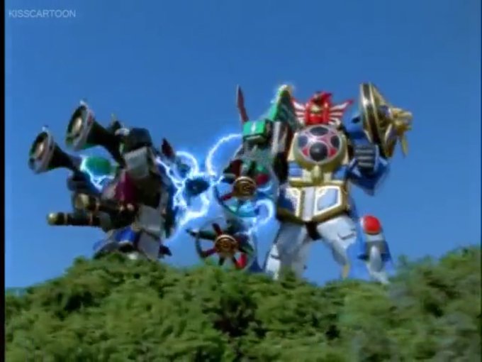 Welcome to part 2 of Tenkuu Gattai week. Today, we’re doing the team up with the previous Squadron, Hyakujuu Sentai Gaoranger (or in layman's terms, the team-up Power Rangers fans were disappointed never happened back in 2003). As with most Sentai crossovers, this is written by the most senior writer who’s written for both shows, but (normally) isn’t the head writer. In this case, that’s Naoyuki Sakai. With that, on with the review. (Please note that I will be using different subs, provided by Gao Soul Forever, for the screenshots, which may result in different romanisations and translations. I will be using my regular subs to write the review, for consistency.) We open with the Hurricanegers defeating a whole army of Magerappas, through the use of stock footage (which is fairly obvious, as they go from a forest, to a lake, to a quarry and finally to the coast). As they call out for the Jakanja to send them someone good, they get blown back (be careful what you wish for) by these guys. https://pbs.twimg.com/media/Ev0PKblX...jpg&name=small https://pbs.twimg.com/media/Ev0PKbgW...jpg&name=small As the Hurricanegers are shocked, GaoRed says this. (Followed by “Hurricanegers, prepare yourself”) https://pbs.twimg.com/media/Ev0PKbnX...jpg&name=small Cue titles, which come with a one off modification with the Gaorangers added to the opening shots. https://pbs.twimg.com/media/Ev0PKbmX...jpg&name=small https://pbs.twimg.com/media/Ev0PUXrX...jpg&name=small https://pbs.twimg.com/media/Ev0PUXqW...jpg&name=small A fight breaks out, with the Hurricanegers being beaten down, with GaoWhite pushing Nanami into the water where GaoBlue has the advantage, GaoYellow avoids Kouta’s Earth-based techniques with his wings and Yosuke’s techniques and weapons are outmatched by GaoRed and GaoBlack. https://pbs.twimg.com/media/Ev0PUXsX...jpg&name=small Oboro bids the three retreat, which they do just as they get his with a blast from the Gaorangers’ JuuOhKen (Don’t ask how a sword can fire a laser). At Ninja Base, Oboro and Hamster Headmaster explain that the 5 Gaorangers - Kakeru Shishi, Gaku Washio, Kai Samezu, Sotaro Ushigome and Sae Taiga - defended Earth from Org while the three were training at the Ninpuukan (Nice to see them explain why the current heroes haven’t heard of the last ones, rather than just have that be a thing that happens). https://pbs.twimg.com/media/Ev0PUXrW...jpg&name=small As the heroes wonder why heroes of justice would turn evil, we cut to the Centipede, where the Seven Spears (still two short) celebrate having overpowered the Hurricanegers, with Manmarva giving praise to the Hyakujuu Sentai Gaoranger’s power. This victory turns out to have been brought on a new member, Chubozoo (No title, he’s just Chubozoo). https://pbs.twimg.com/media/Ev0PfxkX...jpg&name=small As Satarakura praises “Chubo” (coming from him, that’s not nothing), Sargain suggests a different reason for his success. https://pbs.twimg.com/media/Ev0PfxpX...jpg&name=small As we see that all of the regulars now have a glowing pendant around their necks, Chubozoo asks to inherit his brother Chuzoobo’s place as the Second Dark Spear, to which Tau Zant agrees, provided the plan succeeds. Elsewhere, the Gaorangers have begun to attack the Gouraigers, with the Hurricanegers catching word and running in to help them. They stop Ikkou from shooting the Gaorangers with the Double Gadget, before asking the Gaorangers why they’ve joined the Jakanja, to which the 5 detransform, revealing that at least, they look like the real thing. https://pbs.twimg.com/media/Ev0PfxiX...jpg&name=small The Gaorangers then explain themselves while passive-aggressively insulting the Hurricanegers. It then turns out the whole thing was just an excuse to make colour puns (hmm, who else likes making bad jokes?). Yosuke of course, isn’t amused. https://pbs.twimg.com/media/Ev0PfxiX...jpg&name=small GaoRed then explains that they’re evil for a very good reason: They sold their souls to the devil (Finally, a simple explanation for villainy). They then transform back and restate their desire to destroy the Hurricanegers, calling the Gao Jewels to return to them. https://pbs.twimg.com/media/Ev0Po9eX...jpg&name=small The Gaorangers then use the Gao Jewels to summon the Power Animals, forming GaoKing. The Hurricanegers and Gouraigers summon their Shinobi Machines to form Senpuujin and Gouraijin. https://pbs.twimg.com/media/Ev0Po9fX...jpg&name=small The Gaorangers then escalate by summoning GaoGiraffe, combining with it to form GaoKing Spear, which defeats Gouraijin with its Neck Thrust attack. https://pbs.twimg.com/media/Ev0Po9YX...jpg&name=small This causes Yosuke to get dangerous and transform Senpuujin into Senpuujin Hurrier to fight in earnest. We then see the male Gaorangers and the Gao Miko Tetom tied up in a cave, watching the scene helplessly. https://pbs.twimg.com/media/Ev0Po9ZX...jpg&name=small https://pbs.twimg.com/media/Ev0PxcVX...jpg&name=small But where is their sole female member, Sae? She escaped and runs towards the battlefield, where GaoKing defeats Senpuujin with the Super Animal Heart. https://pbs.twimg.com/media/Ev0PxcSX...jpg&name=small Sae yelling causes GaoTiger to block GaoShark from destroying Senpuujin. When Sae explains the ruse, the Power Animals disengage the combination and eject the fake Gaorangers, who dodge an attack with a ninja dash (curiouser and curiouser). At Ninja Base, Sae explains that they were captured by a Jakanja monster (Chubozoo) who stole their G-Phones and attached talismans to them that limit their movement. https://pbs.twimg.com/media/Ev0PxcaW...jpg&name=small https://pbs.twimg.com/media/Ev0PxcdW...jpg&name=small After a closer examination, Oboro and Hamster Headmaster have determined that the talismans are transmitting a copy of their victim’s biological data somewhere (which they surmise to be the fake Gaorangers), but Ikkou wonders how the Jakanja found out about the Gaora