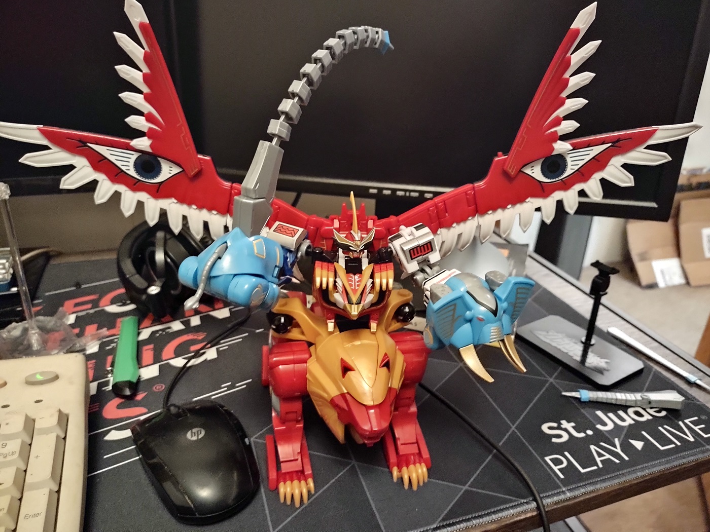 also here it is. i like very possible i suck at posing though does come with a stand to help Attachment 62176 Attachment 62177 i will leave with the the giraffe and deer arms but did add a picture of it as kentarus and also here is the longer thinner blade for the blue elephant. the gray is a very different color and does not match the black elephant that came with gaoknight Attachment 62178 |