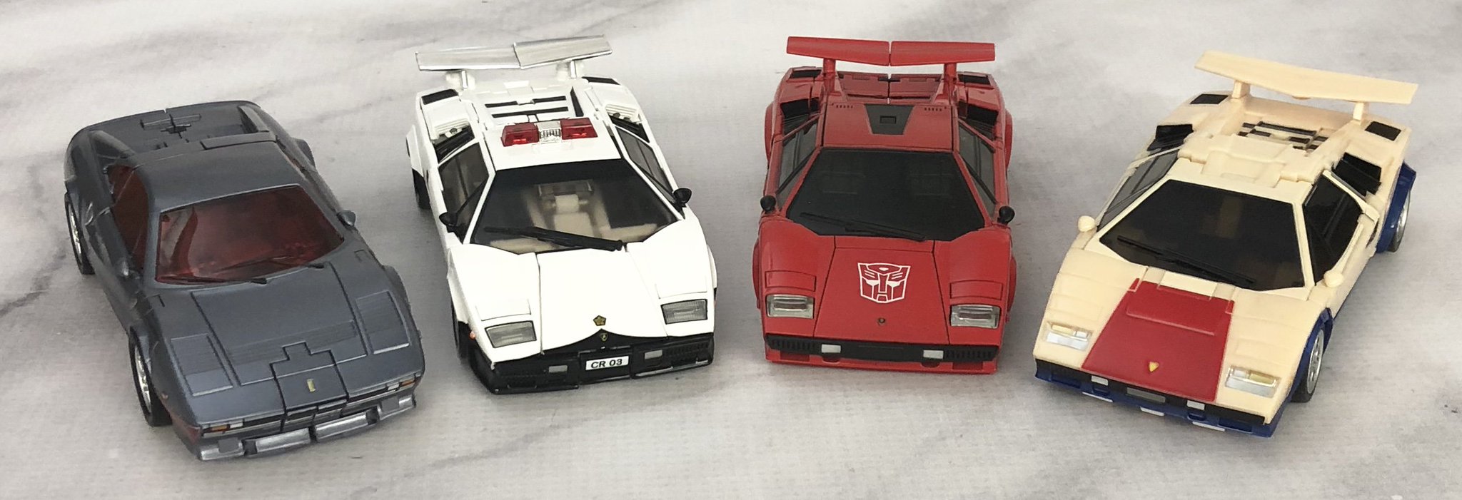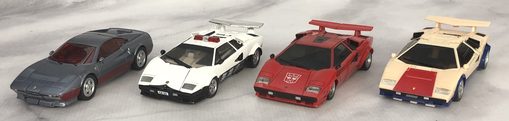 And comparing three different masterpiece transforming lamborghini's: old official Sideswipe, new official Cordon, and recent 3rd Party stunticons (XTransbots).