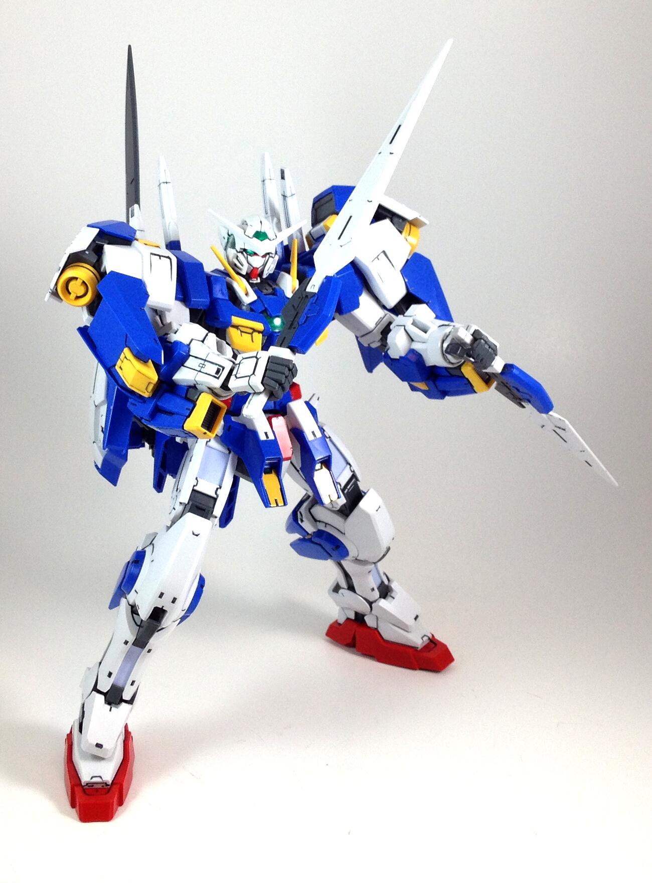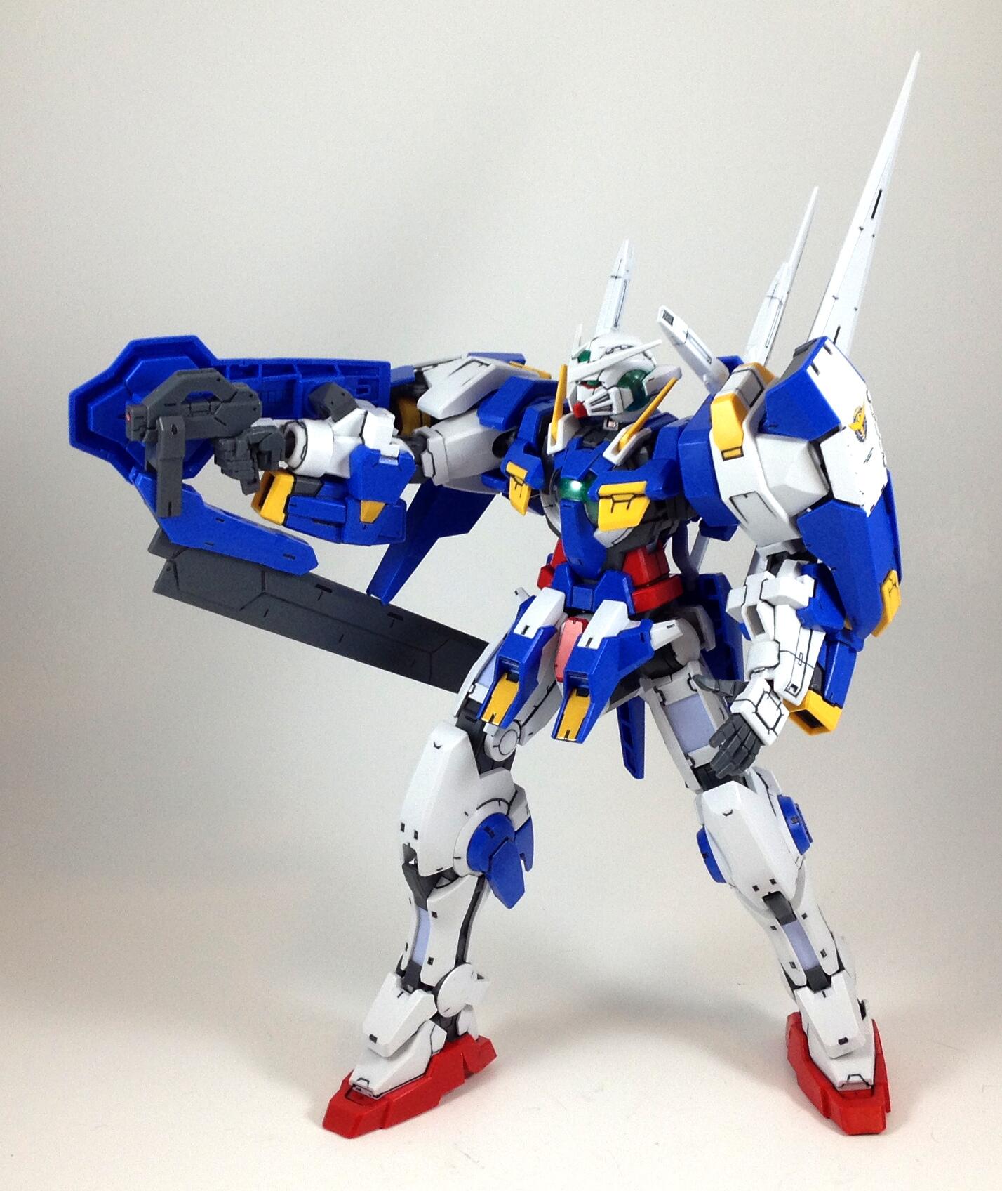 http://i1276.photobucket.com/albums/...ps391da016.jpg I'll have to fix the ankle guards on the Blue Destiny (they keep splitting) and paint the bar on the top of the shield grey, then do a top coat afterwards. These straight builds were fun. Next, I'm going to finally start building a MG AGE-1 Normal that's been sitting around here for a while. |