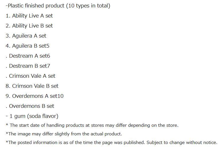 https://www.bandai.co.jp/candy/produ...835417000.html It confirms that By9 is 10 different boxes. If there was unrevealed boxes, they'd list them as something like ????. https://www.tokunation.com/attachmen...1&d=1659317525 These pages don't tell the case size, so either this wave is reduced to a case of 10 or there's duplicates to fill the space left by Ultimate Revi and Vice. |
