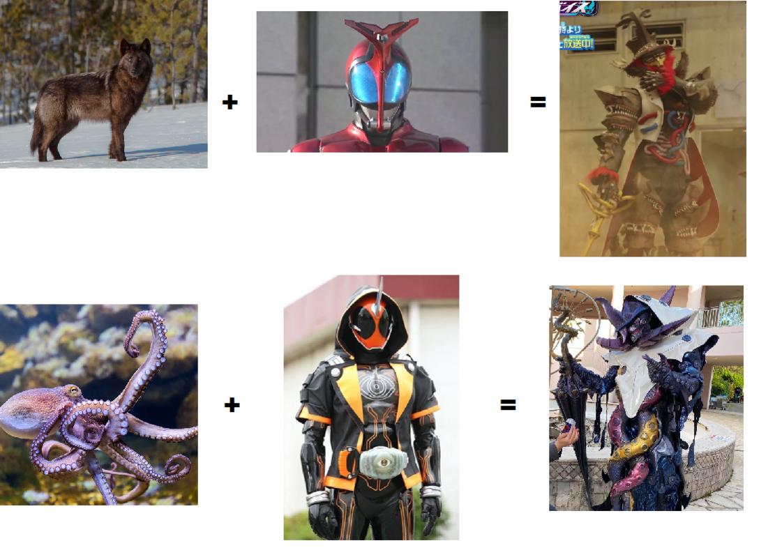 Wolf + Kamen Rider Kabuto (beetle) = Julio Octopus + Kamen Rider Ghost (hoodie) = Olteca http://www.tokunation.com/attachment...1&d=1632019233 |