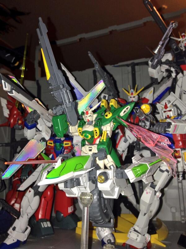Finished MG Gundam X and HGBF Wing Fenice w/ Battle Hopper