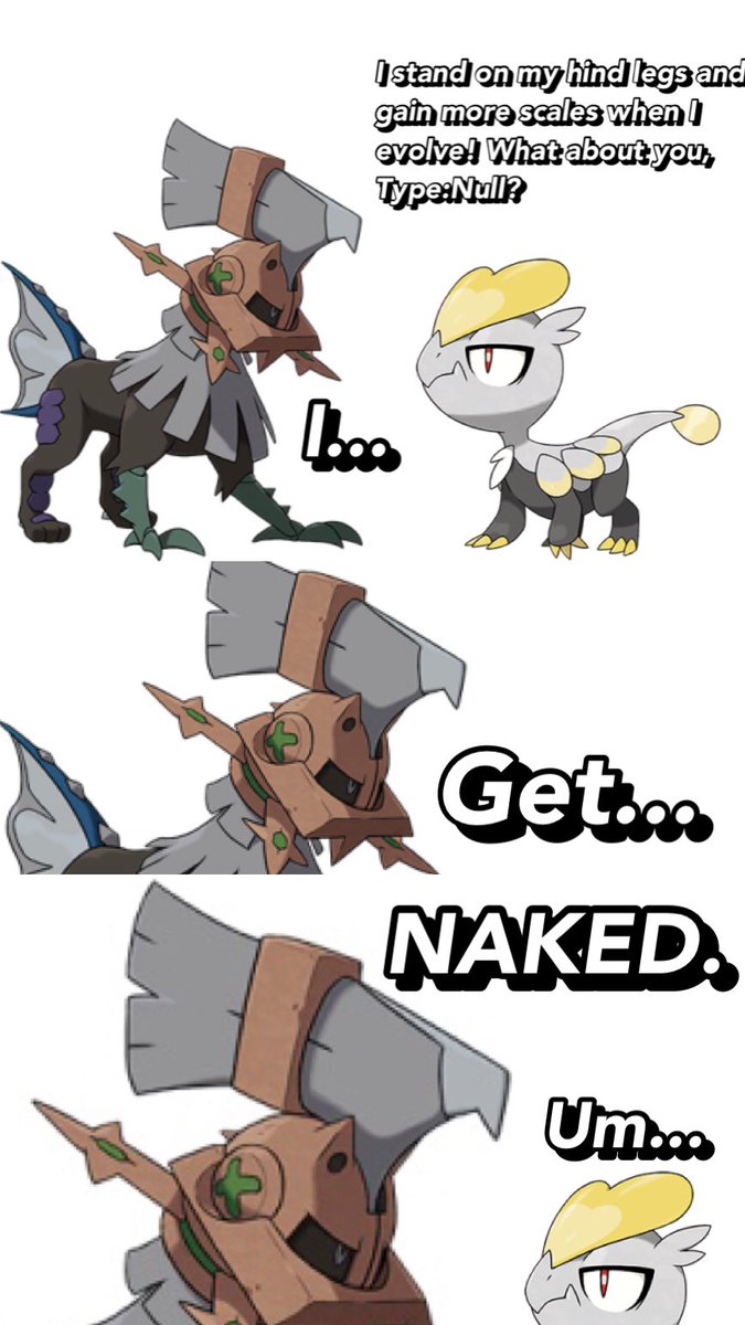 Gotta say though, in a gen where they have shown themselves willing to have very different designs as just different forms of a single Pokemon (like Lycanroc or Wishiwashi) it's surprising that "taking its helmet off" apparently counts as an evolution. Pretty weird. |