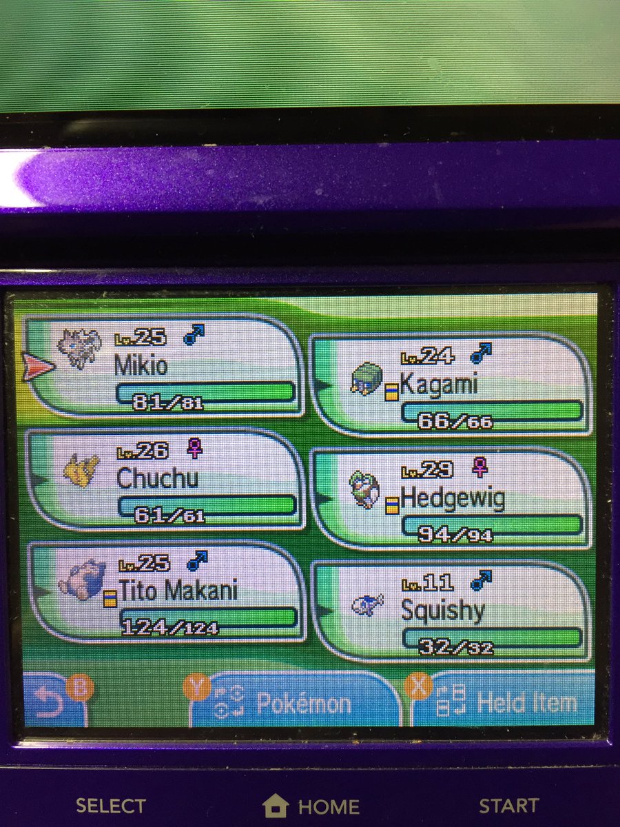 And goddammit game, now I can get Feebas, too? I'M TRYING TO NOT, BUT IT'S SO HARD TO RESIST Also, team. http://i.imgur.com/scSLZIe.jpg I'm moving at a slightly slower pace than usual simply because Hau kills all enjoyment and I want him to stop showing up. |