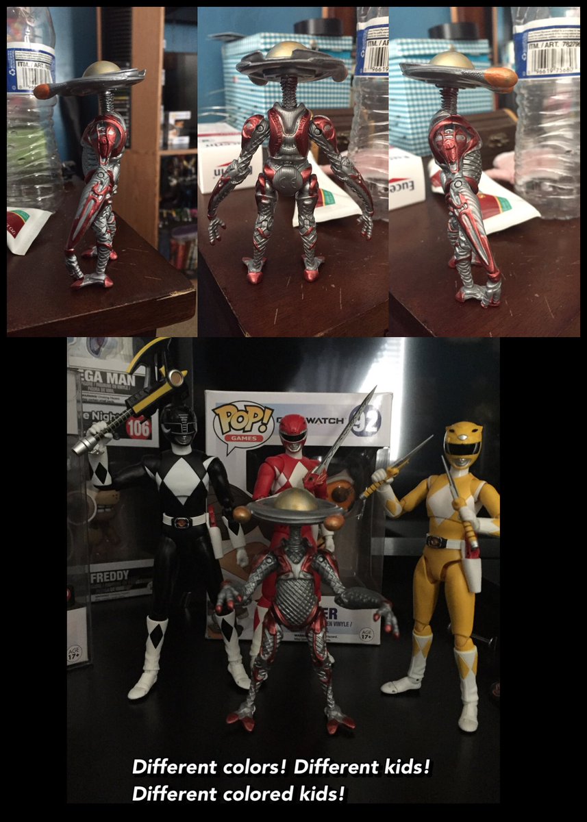 http://i1277.photobucket.com/albums/...psblzdhdai.jpg Before anyone asks, I went to see the movie twice; I've examined a bunch of stills from a theatercam, and I am convinced that the fins on the Megazord's head are actually RED and NOT pink like all of the toys would have us believe. http://i1277.photobucket.com/albums/...psuhxq2olf.jpg It can also do that thing none of the toys can do. :lol http://i1277.photobucket.com/albums/...psdldu7fcy.jpg They're not exactly to scale, but I also made some minimalist micro Rangers to display along with it. |