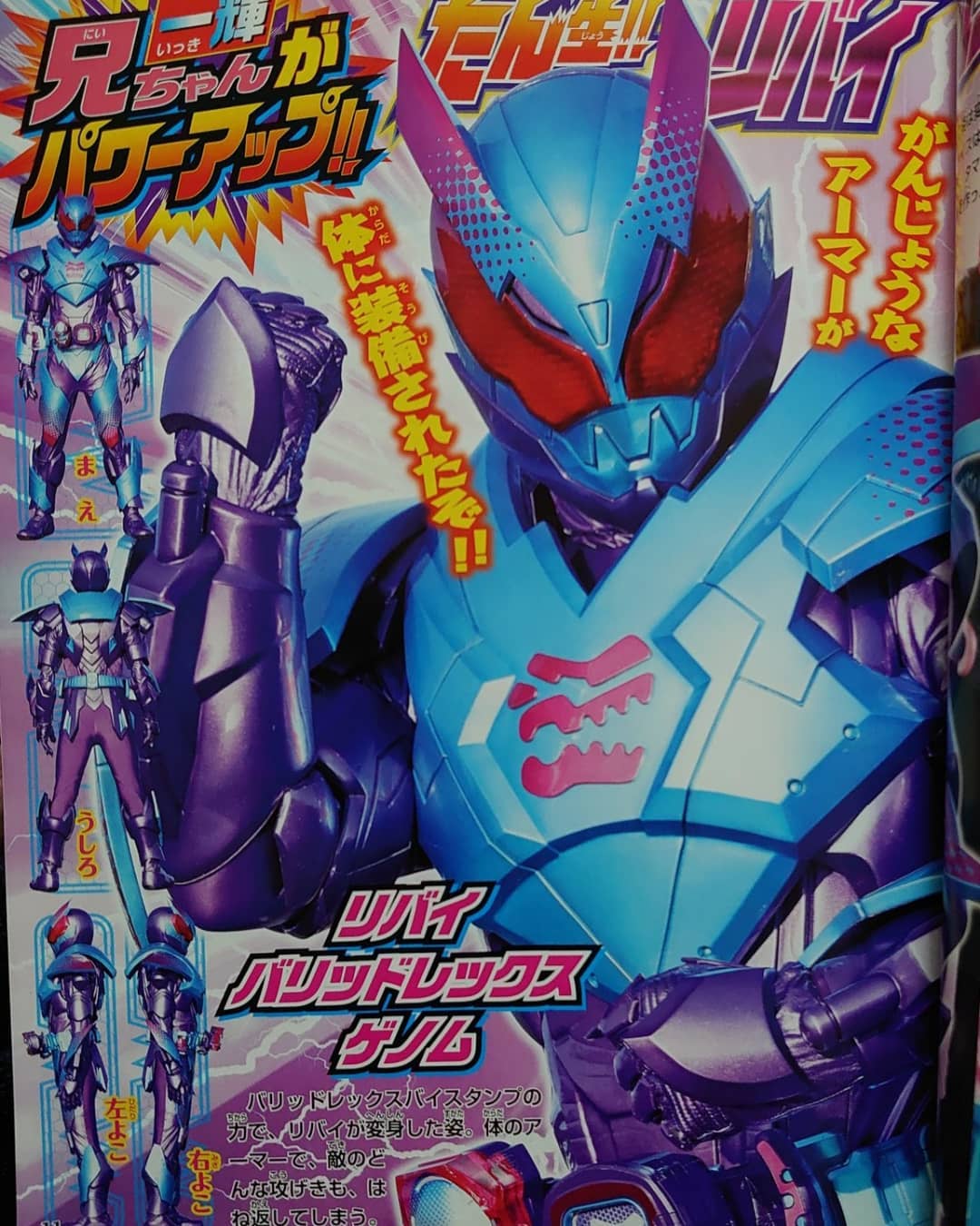 Rabukof (Or however they decide to spell it) looks amusing, where Evil possesses Daichi, and Vice looks like a monster, this one's a plushie, and the fact that it's getting beat up by a swarm of Yunia is both hilarious and adorable. I don't think we should read too much into the quip with Vice and Rabukof, as this seems like some one-off joke with Vice making a pun out of a shortened version of our new demon's name (Rabukof-Rabu=Love). Just typical Vice nonsense. Barid Rex looks good, nowhere near the level of Dragonic Knight, but still has a nice design. Live Jackal looks good, I like how it's more in line with Revice's Genome forms, and it fits a bit better than the bat motif. Buld Genome is coming! Also, Vice's Final Form is just going to be normal Vice (not Kamen Rider Vice) with some extra colors and a big Vice face crest on his chest, while Revi is just Ikki with a leather jacket and a Revice colored scarf.:lolol |