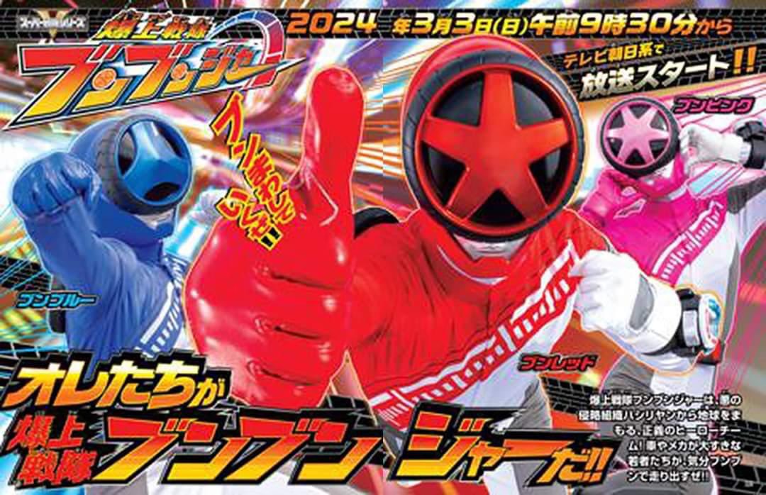 These suits look bad... in the best way! It's such a Showa look from the lips (which I'll admit am not a fan of) to the tire faces with patterns, ala Goranger or Jak-Q, they look very retro. And those shoes... Those gosh darn shoes! I kind of like them. Sure, I'll miss the fantastic designs we've been getting since Lupinranger Vs Patranger, and that we've had such amazing suits since, but I'm not opposed to more retro designs. Though, they are still slightly different from the norm as we've been seeing with some of Reiwa's Sentai designs. Also, from the Poster it's official the "Boon" was intentional and not me thinking they mistranslated "Boom-Boom" though they were probably going for that. I kind of expect something wacky or classical monster-of-the-week for this show, but we shall see. |