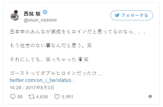http://nihonhero.weebly.com/uploads/...e0isz_orig.jpg A tweet related to Kamen Rider Heroine of Neo Heisei Series which was trending recently reaches the Shun Nishime → Takeru Tenkuji / Kamen Rider Ghost & he reacts to it. This tweet lists Onari as the Heroine of Kamen Rider Ghost than Hikaru Ohsawa (Akari Tsukimura). A heroine is the one who cast about the protagonist and when you have a close look at Kamen Rider Ghost Series the number of times Onari cares about Takeru is more than Akari. This titles Onari as the Heroine of the Series. Here's the Reaction Tweet of Shun Nishime: http://www.tokunation.com/attachment...9&d=1501847395 If people in Japan considers Onari as Heroine,,, then it can't be helped. (Laughs) But it made a laugh (Laughs) Wasn't Ghost, Double Heroine? Source |