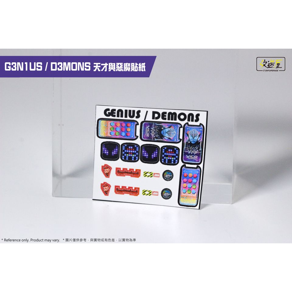 A few new SHFUpgrade products -- the first is a sticker sheet for Genius and Demons. Genius gets the usual Build Driver stickers, while Demons gets Spider and Vail stickers for his Driver and stickers specifically for the phone