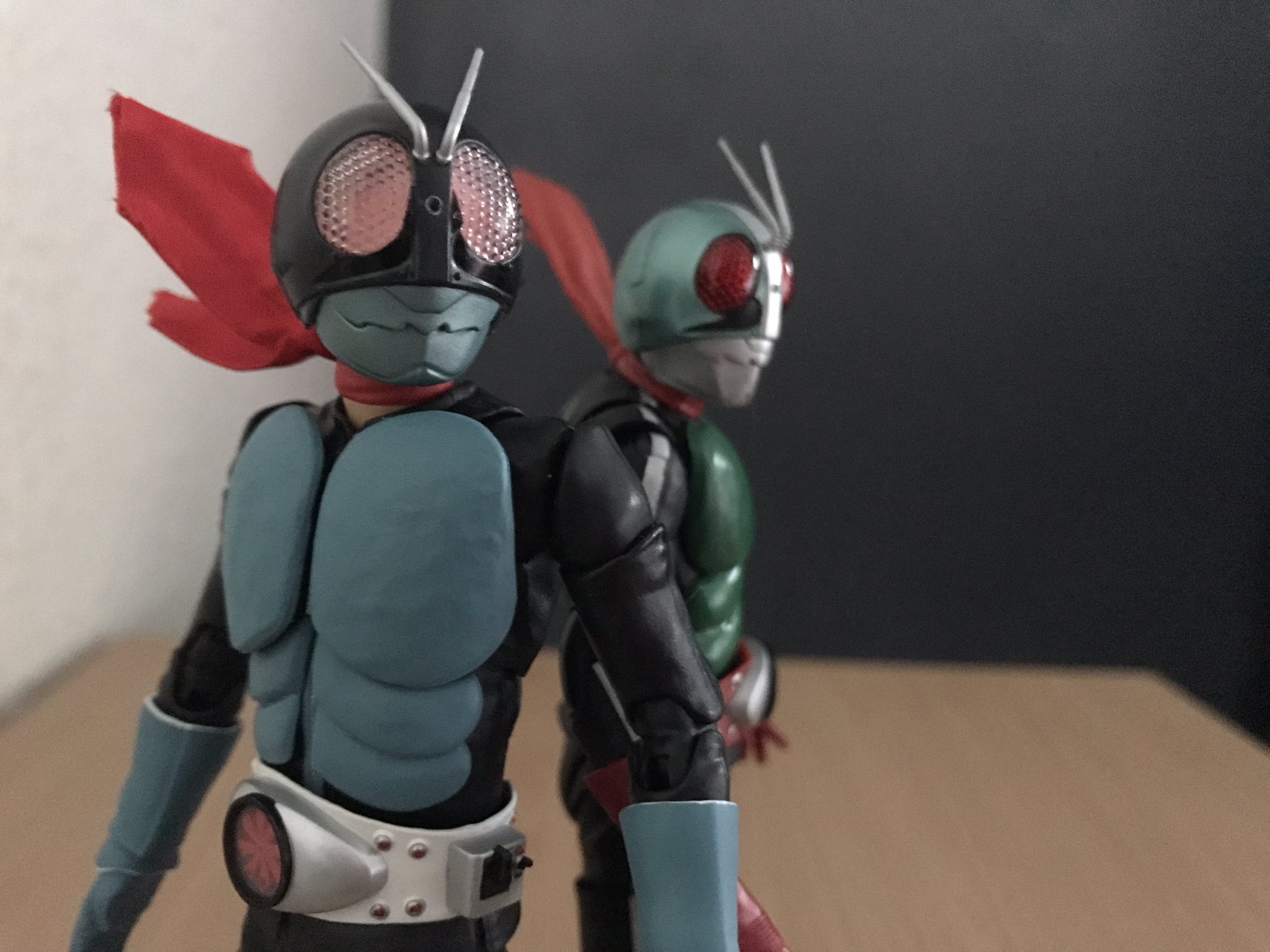 After a long while of waiting I finally got my Original Colours #1 in the other day and he is PERFECT, oh my god. There's a couple extra hand options I would have liked and I wouldn't have minded a Shocker weapon or effect part or something, but the figure itself is as good as it gets. The unique molding to match the original suit is gorgeous, the new head with the larger eyes is wonderful, the blue is BEAUTIFUL, the belt is so eye-catching and the wired fabric muffler brings it up an even further notch with just how much expressiveness you can get out of it! That last part in particular is a really good sign for me since I intend on collecting all 7 Legendary Riders; V3, Riderman, X and Stronger ought to be real nice. Hoping they'll do a re-release of Amazon with a wired scarf...