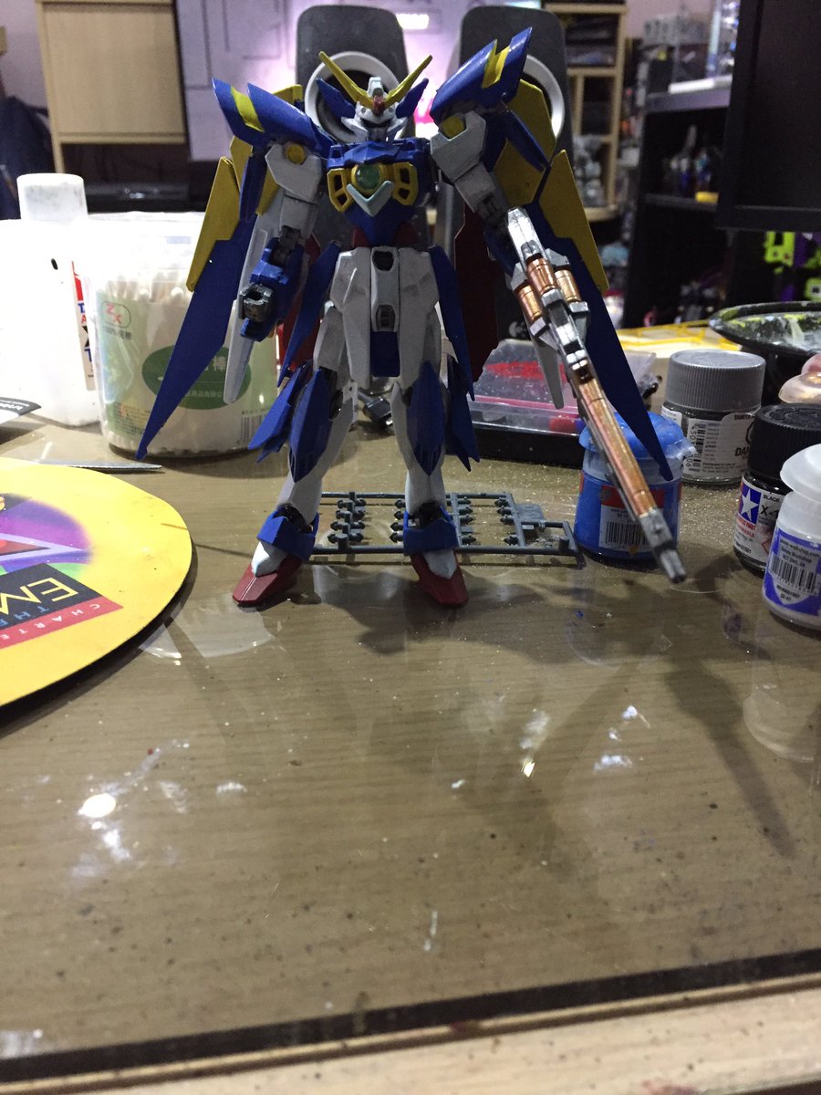 Almost done painting my Wing Gundam Fince Rinascita. Kinda screwed up on the white, but I am happy with the final result. |