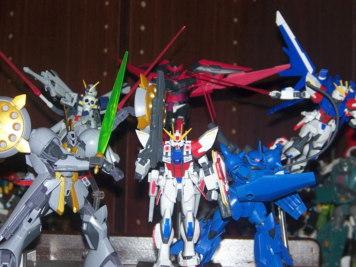 Current Gunpla display for now. They look a bit rough, but I don't have the hands steady enough for added details.