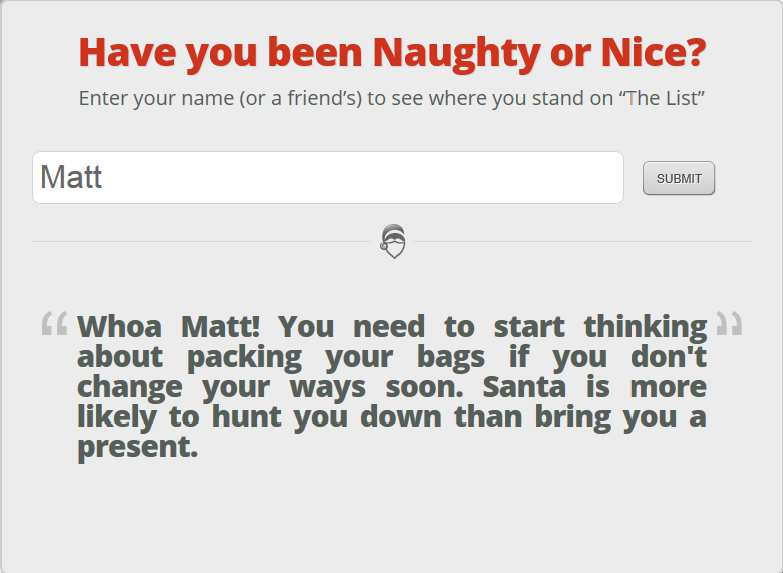 Something tells me that robot santa from Futurama wrote this... that or the fake one from The Santa Claus 2. :lol