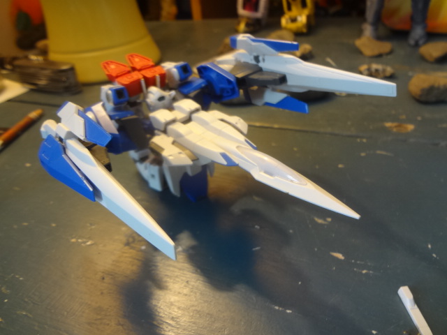 I was messing around with the 00 Raiser, and discovered that it would take very little modding to make it a transforming MS: