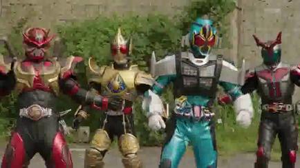 I like how all the other Riders are so used to Tsukasa's 'pretend to be evil to trick the real bady guys' plan that they pretty much see him and just go along with it. Until Momotaros decides to break charcter, at least.