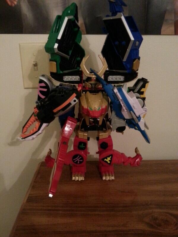 Also I think I figured out the foot thing raz.In this pic... http://www.tokunation.com/attachment...1&d=1386454475 The front leg thighs have pegs on the front.Maybe those pegs fit in the hands of the Legendary Megazord and he can have Samurai blasters? |
