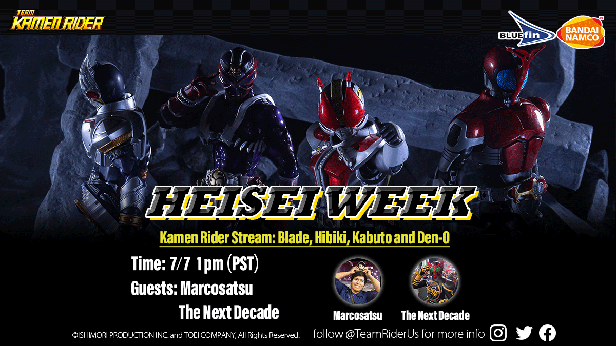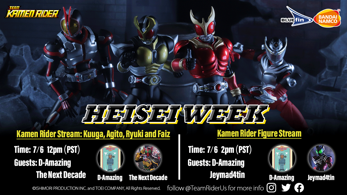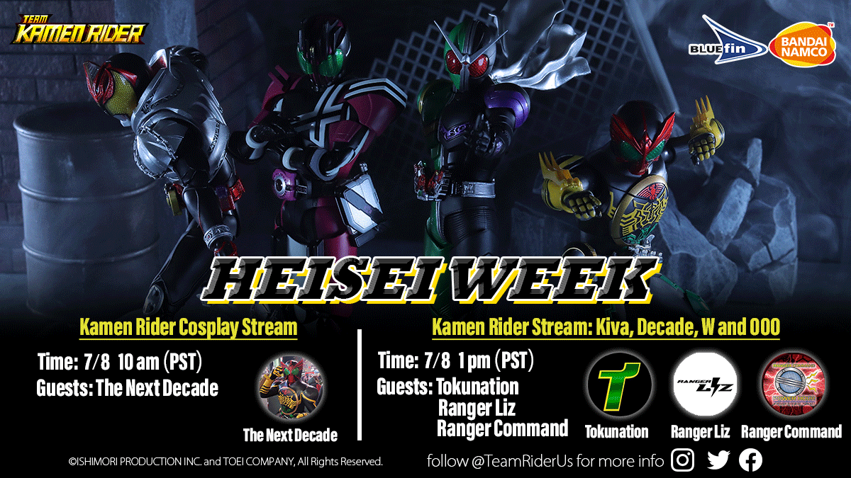 July 6th through the 11th is officially KAMEN RIDER HEISEI WEEK! All week long we will be celebrating the Heisei era of Kamen Rider along with our friends at Team Kamen Rider, Bluefin Brands, Shout! Factory TV, TokuSHOUTsu, and Nerdist. So let's get straight to the details! KAMEN RIDER HEISEI GENERATIONS FOREVER MOVIE WHAT: The final Heisei era movie for Kamen Rider featuring every main Kamen Rider from the Heisei era WHERE: Premiering July 11th (exact time TBD) on Nerdist's YouTube Channel as well as Geek & Sundry's Twitch channel. WHEN: TBD (stay tuned!) WHO: The stream will be available for audiences in the United States and Canada (and anyone with a VPN ... just saying ...) ALSO: The movie will be available via TokuSHOUTsu and their streaming partners by August 1st. NERDIST HOUSE 2020 PANEL PRIOR TO THE MOVIE WHAT: Join Team Kamen Rider, Shout! Factory TV, TokuNation, and Tokusatsu Network as they discuss Kamen Rider, the Heisei Generations FOREVER movie, and more! Hosted by Nerdist on their Nerdist House 2020 program! WHERE: The Nerdist YouTube channel WHEN: Immediately prior to the movie's premiere FOR HOW LONG: TBD! EXCLUSIVE MERCHANDISE? Team Kamen Rider has teased that new merchandise exclusive to this event will become available during Heisei Week! The first wave of product announcements will come via Ranger Liz and her YouTube channel. WHAT: Merchandise reveal for Heisei week! WHERE: Ranger Liz YouTube channel! WHEN: Friday, July 3rd (Time TBD) WHO: Team Kamen Rider will join Ranger Liz to reveal merchandise that is being made available for US fans for the first time ever during the Heisei Week celebration and the Kamen Rider Heisei Generations Forever movie. Click here for our entire list of official Kamen Rider apparel available now at Amazon! Click here to check out everything available via the Team Kamen Rider page! LIVE STREAM EVENTS WHAT: All week long during Heisei Week, Team Kamen Rider will be hosting live streams with tokusatsu influencers to discuss all your favorite Heisei Kamen Rider shows and collectibles. WHERE: Bluefin Brands YouTube channel but also streamed via their Twitter, Instagram, and Facebook pages http://www.tokunation.com/attachment...7&d=1593744264 http://www.tokunation.com/attachment...8&d=1593744264 http://www.tokunation.com/attachment...9&d=1593744264 http://www.tokunation.com/attachment...0&d=1593744264 http://www.tokunation.com/attachment...1&d=1593744264 http://www.tokunation.com/attachment...2&d=1593744264 |