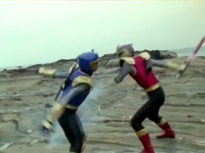 Seriously, I loved everything about them back in the days. Wine red and navy blue was definitely a nice choice to give them that darker contrast to the more brightly-colored Hurricangers to indicate they are a different team. I remember the pre-debut rumor at the time saying there will be a evil duo ranger team with unique colors for their costumes, and I was intrigued right off the bat. The end result was me just going "OHMYGODTHEYDIDIT" and just going nuts at how badass they seemed. Good times. :lolol |