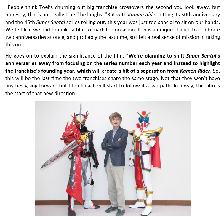 Something else to note besides the number of Sentai is that next year is also the 50th anniversary of Gorenger. So either way, they are definitely making it known that we're having an anniversary Sentai.