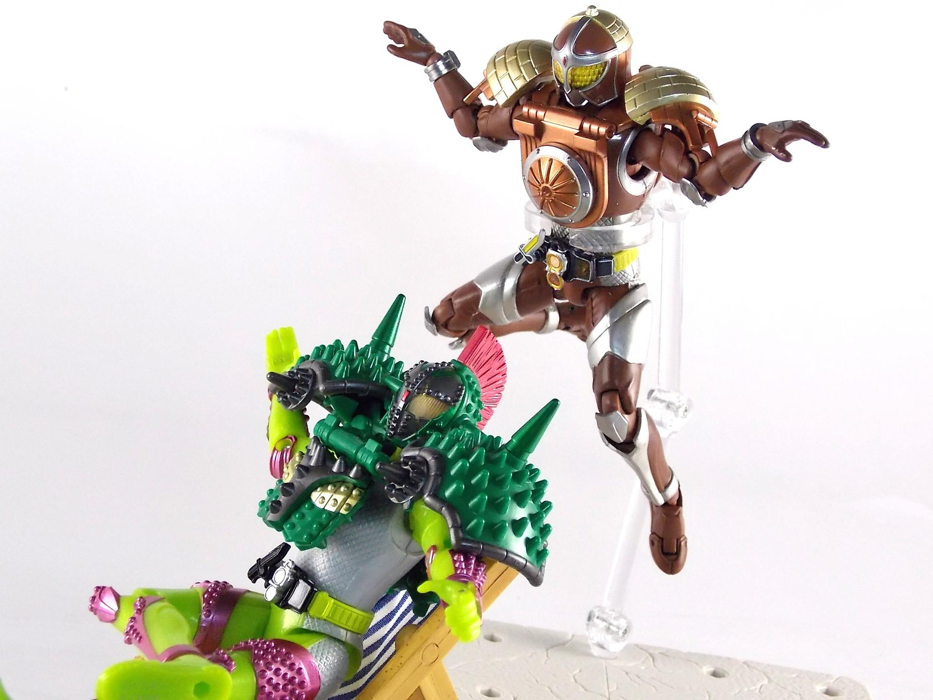 are also spot on. In particular the visor on his helmet is really well done. Much more so than Arms Changes, the Figuarts of these characters really capture the inset visor details. Gridon's almost looks like a honey comb it's so nicely sculpted and painted. Also the