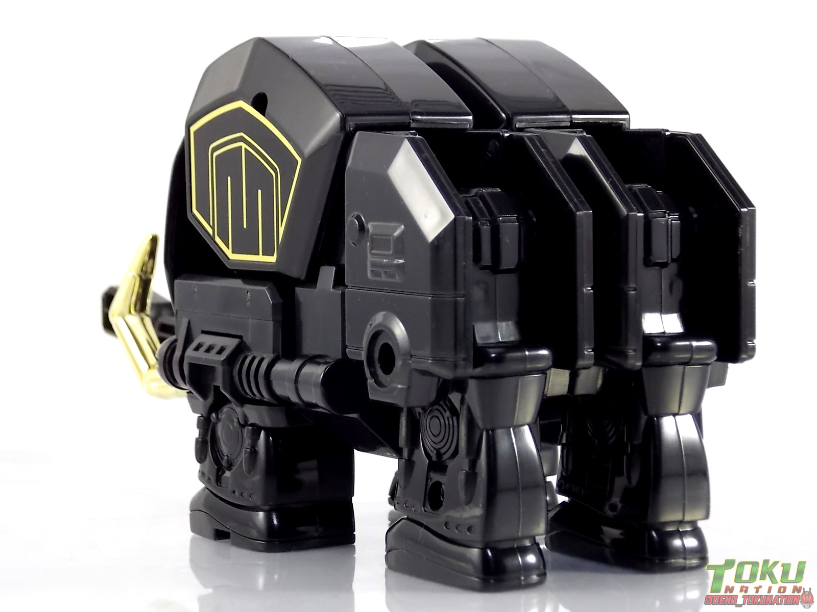 also needs to be plugged into the small port under the Tyranno head, and the trunk pointed downward. This is a, for lack of a better word, beastly combination that looks really intimidating in all black. It looked cool if a little disjointed in normal colors but the uniform color scheme really helps sell the idea that this thing is a literal tank.