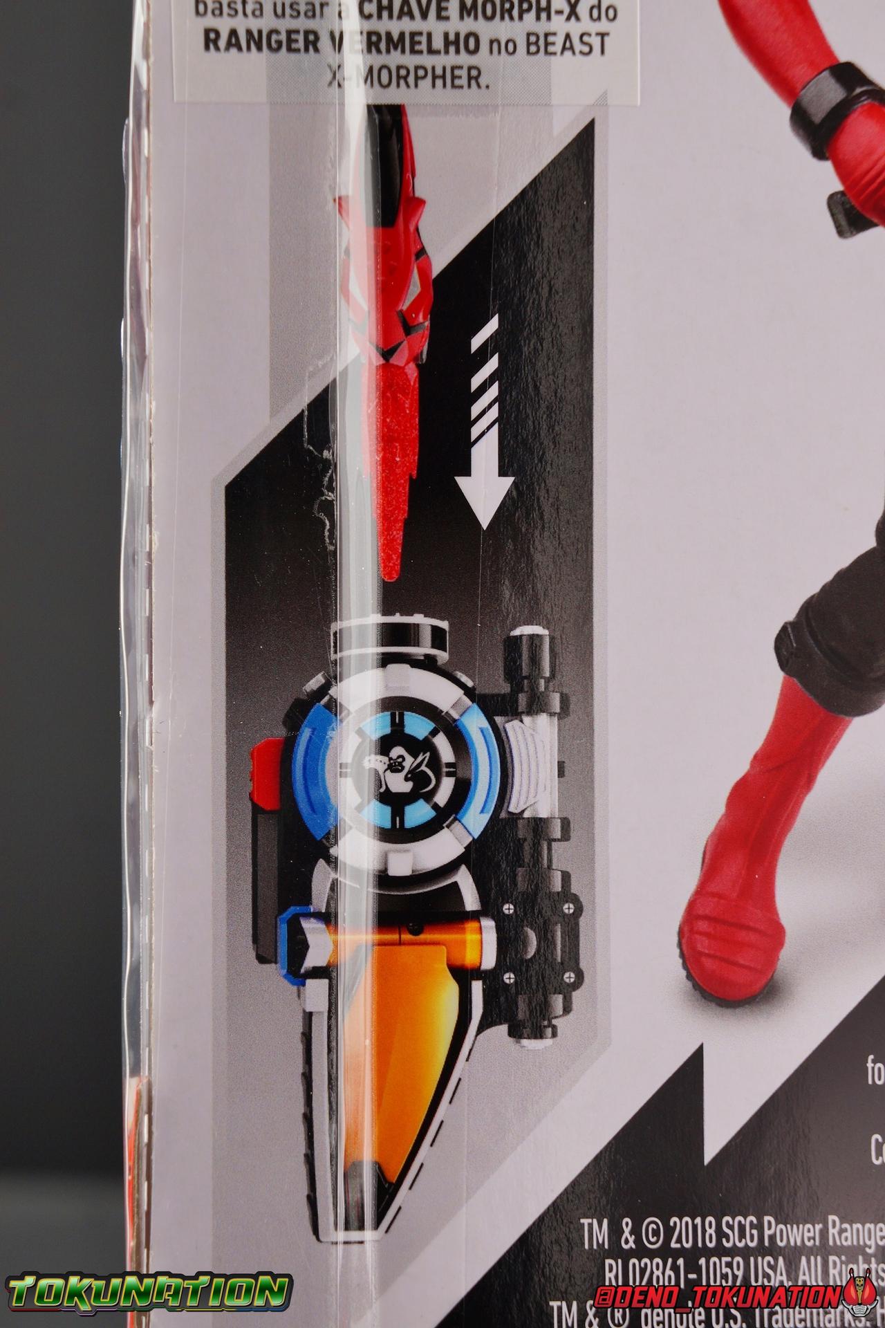 Hasbro's Beast Morphers packaging is incredibly vibrant and a great evolution from what came before it. It's exactly the kind of change needed to really spice up the line and attract customers. Brighter colors and a less mundane packaging layout (looking at those very dark Ninja Steel card backs) go a long way to making a figure more appealing to potential buyers. A more standardized but larger brand logo is emblazoned across the front, but the most eye catching thing is the gorgeous new box art. The Red Ranger's head shot is just so alive and colorful. The back of the card back also features similar though smaller portraits for the other two rangers and well as the two villains of wave one. Each really looks incredible and I'd love to own prints of them. Both sides of the packaging also feature a cross-sell for the Beast X Morpher. Each figure in Wave 1 includes a key compatible with it to activate Morphin and Battle sounds as well.