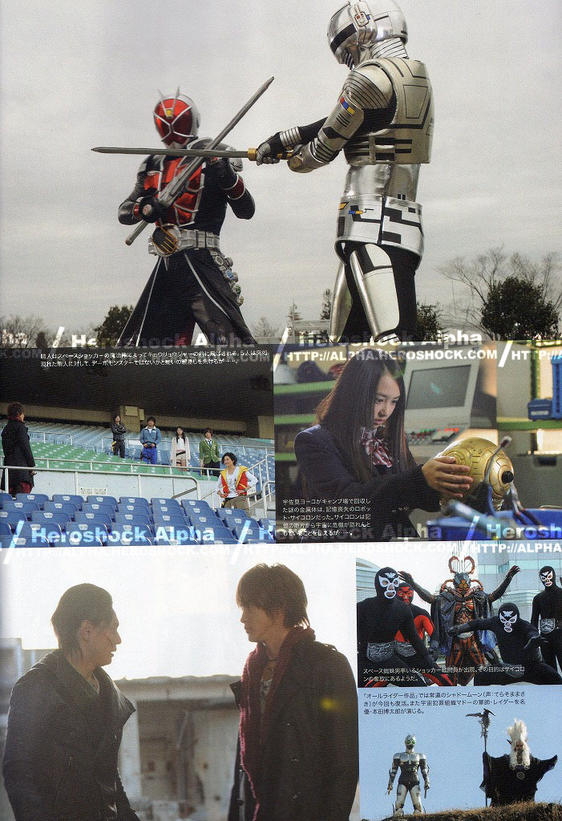 images also tease us. One image in particular features Tokusou Sentau Dekaranger, Choushinsei Flashman, Kamen Riders Meteor & Fourze, Space Sheriff Gavan, and Kamen Rider Super-1. And of course what would a team up movie be without the plot device/hole that is Kamen Rider Decade? Who isn't really space themed.