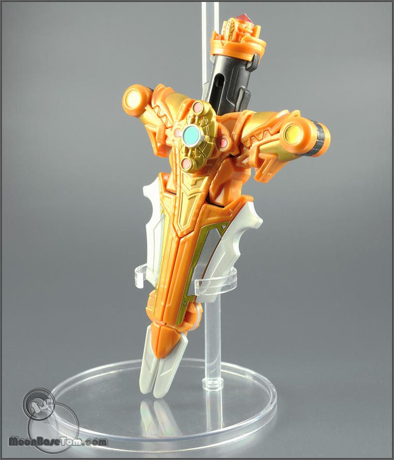 ! And that's all he needed to say. This was a completed figure, and only needed labels applied. There was no construction involved at all. His transformation is simplified from his DX toy, the jewel on his chest didn't lock the toy it only turned on a peg.
